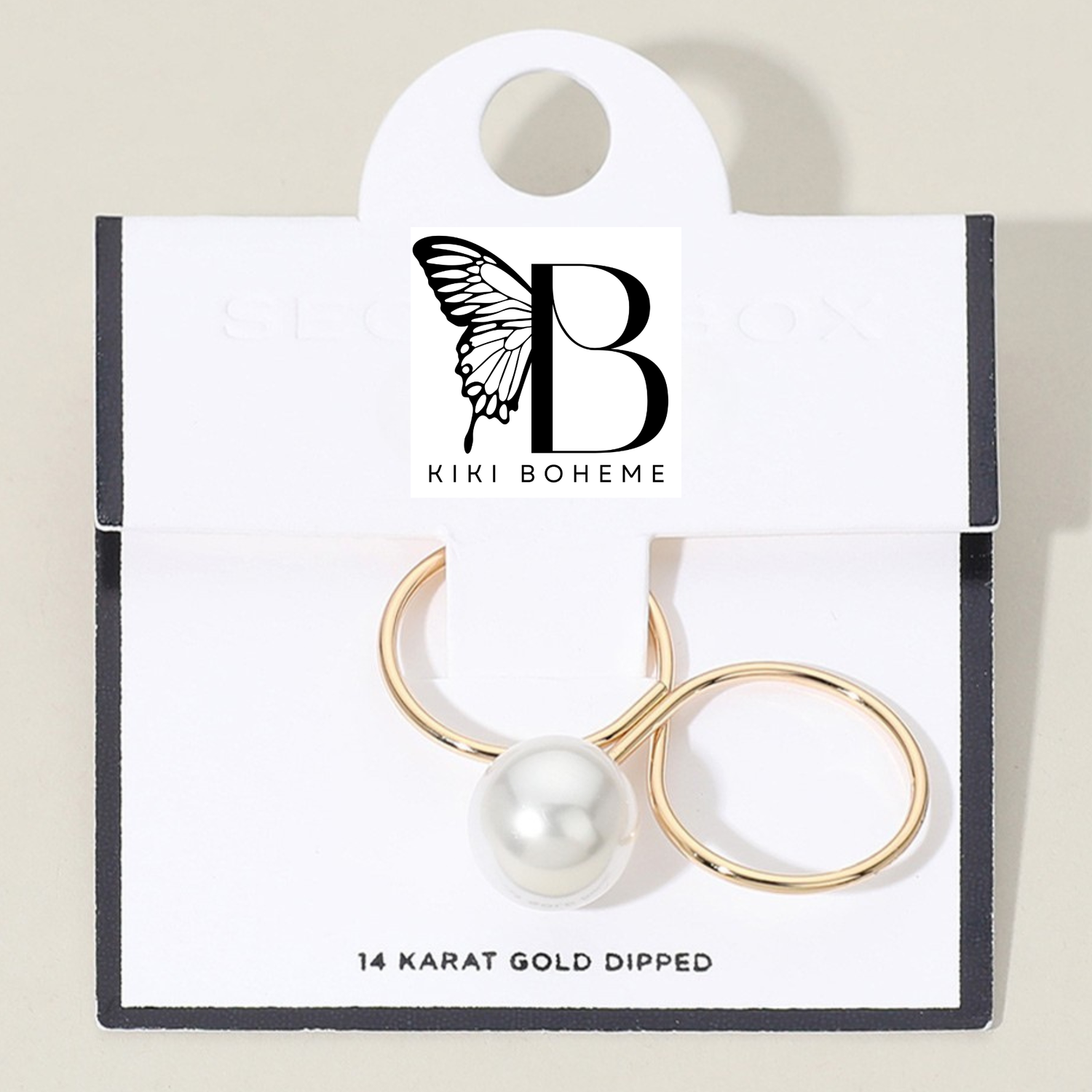 Elevate your look with the 14K Gold Dipped Pearl Two Finger Ring. This sleek, minimalist band features a striking round bead accent set on a slim, adjustable band designed to span two fingers. Its refined silhouette and versatile design make it the perfect modern accessory to complement both casual and formal styles.