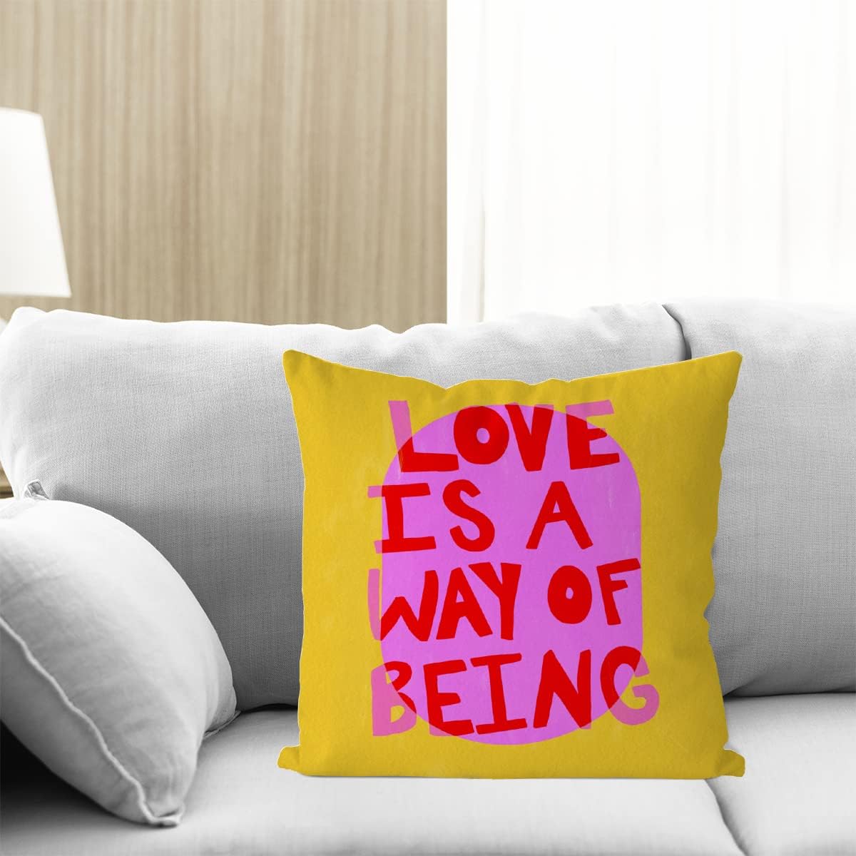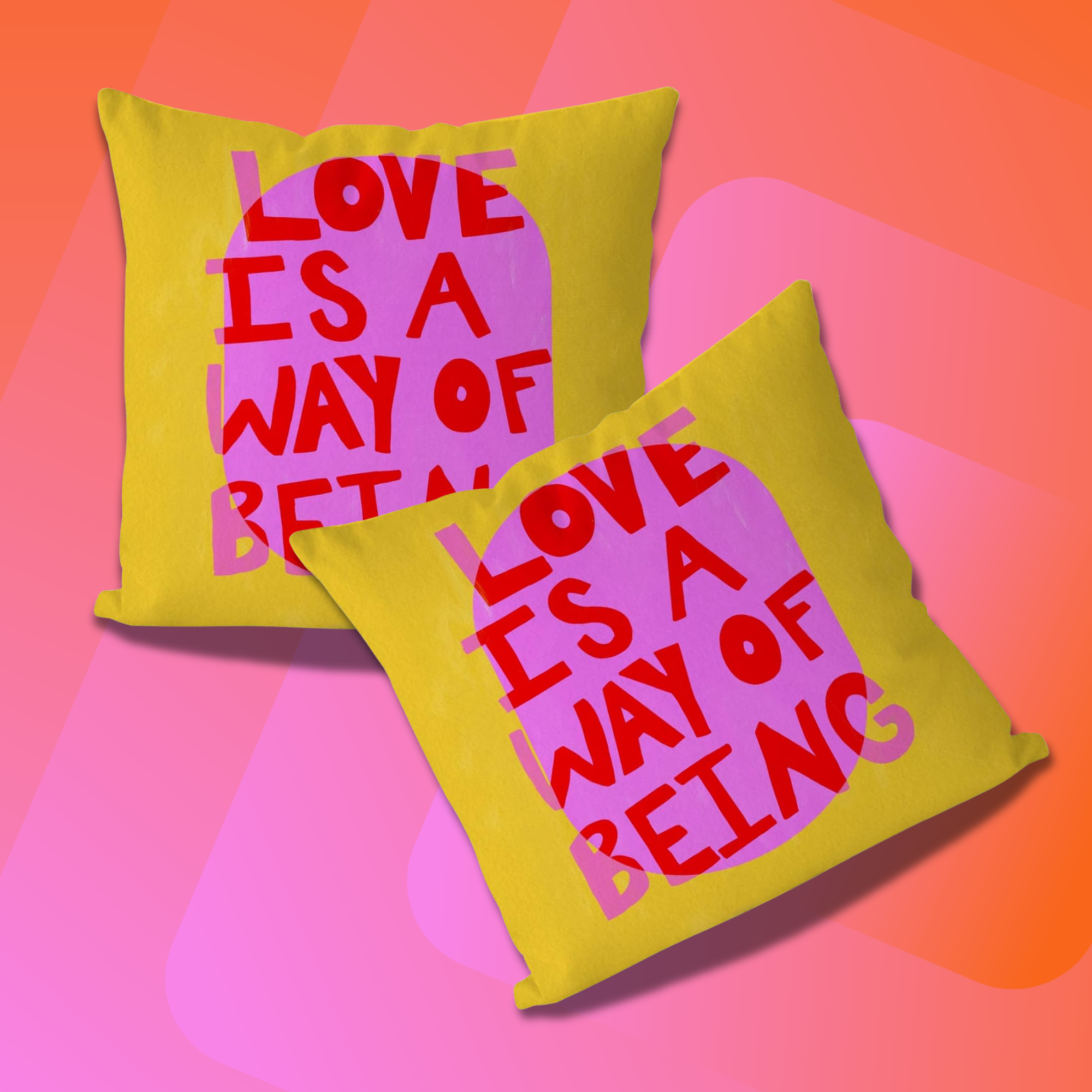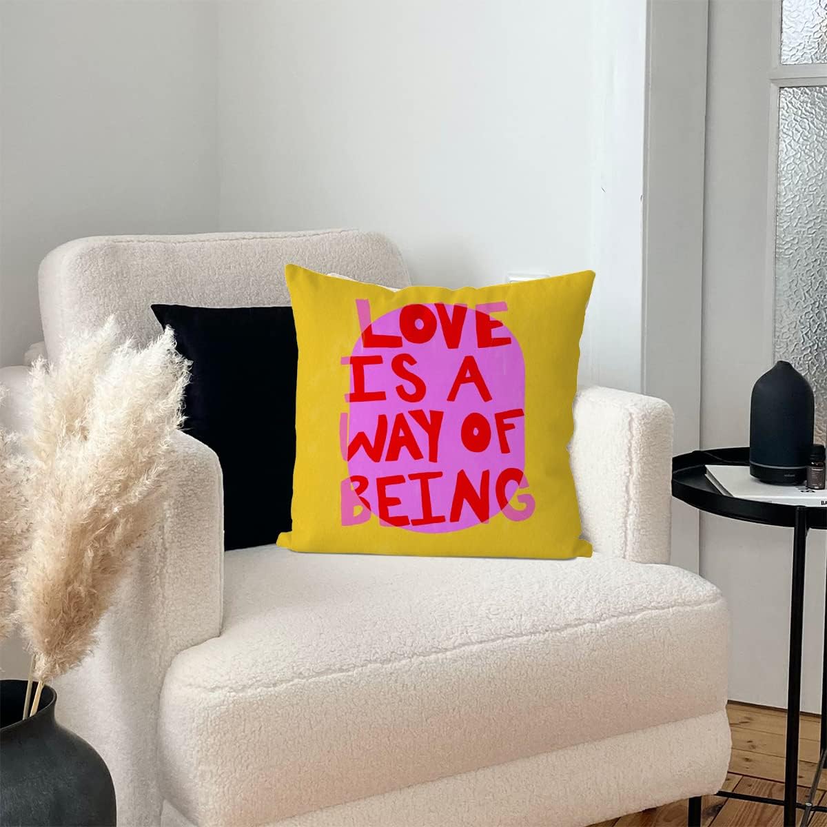 Bring full-spectrum joy into your space with this bold, feel-good statement pillow cover. Designed for dopamine decorators and color maximalists, this piece delivers instant mood-lifting energy. The front features a vibrant pop of yellow + pink with hand-drawn style lettering, while the back balances things out in a clean, neutral cream canvas — giving you two display vibes in one.