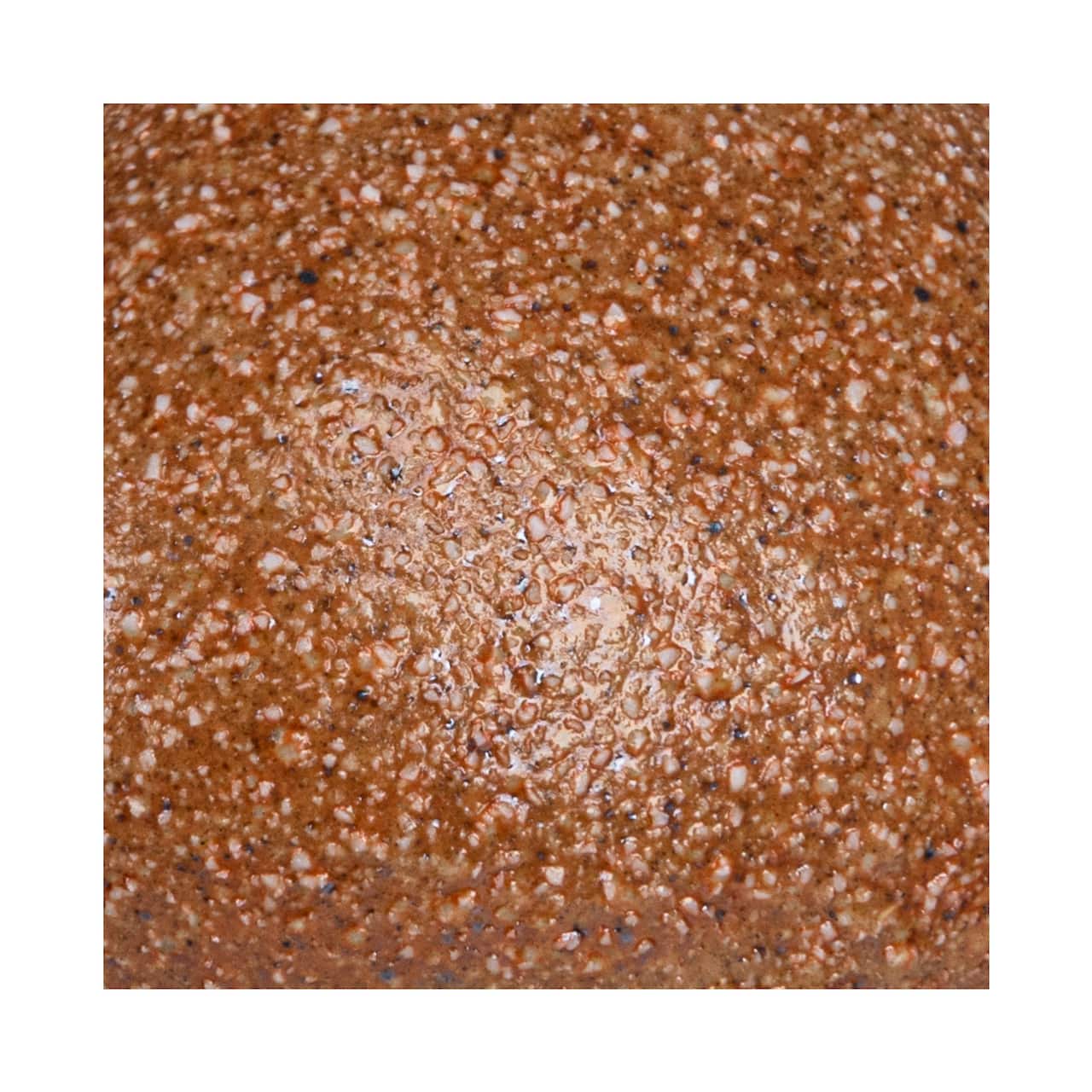 Made of baked clay, these vases have a round shape and small opening, and feature a brown reactive glaze for a smooth, shiny surface.