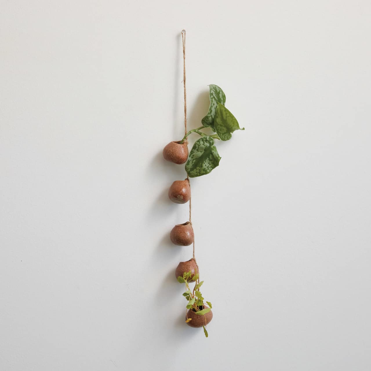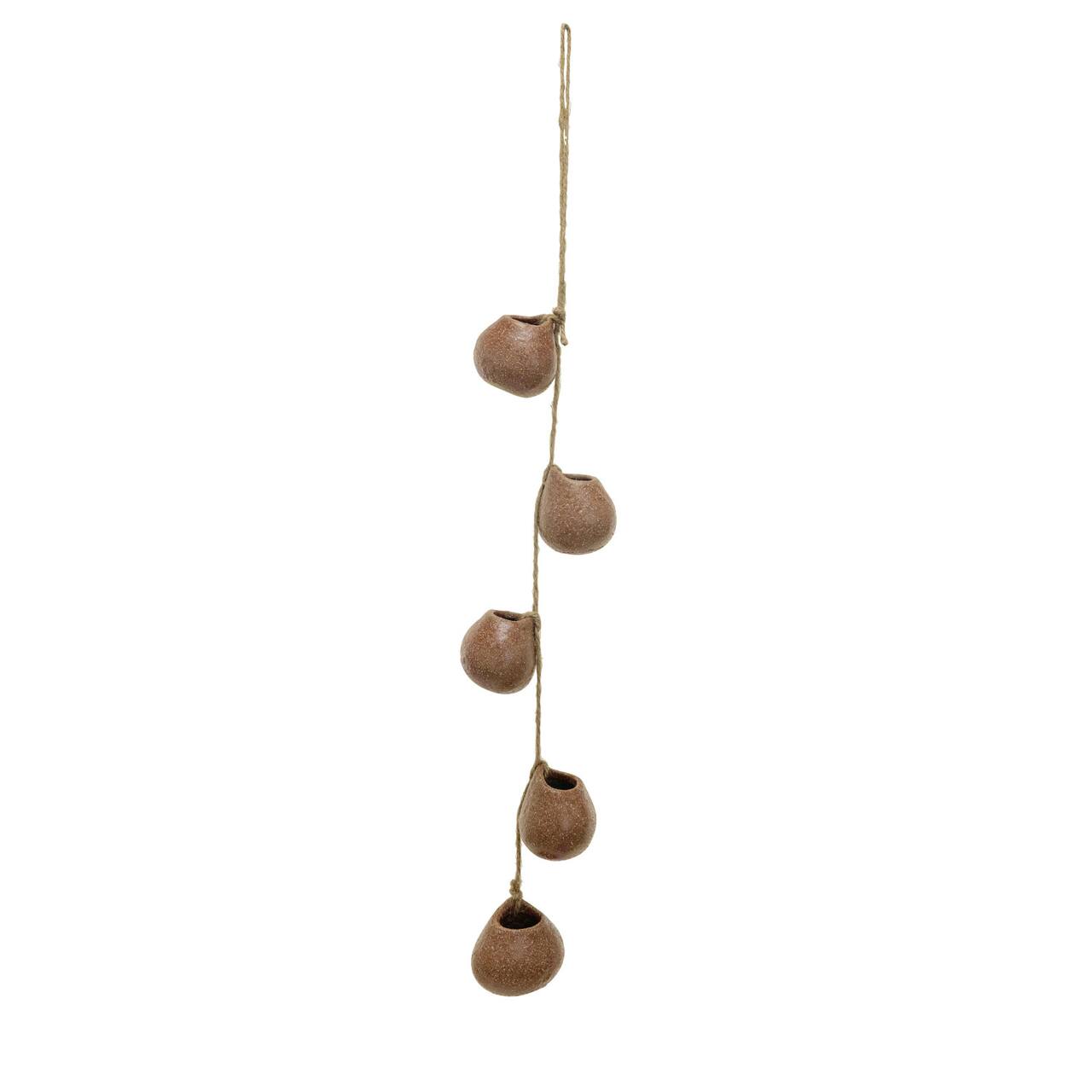 This set of round stoneware hanging vases with a brown reactive glaze is a versatile and versatile home accessory.