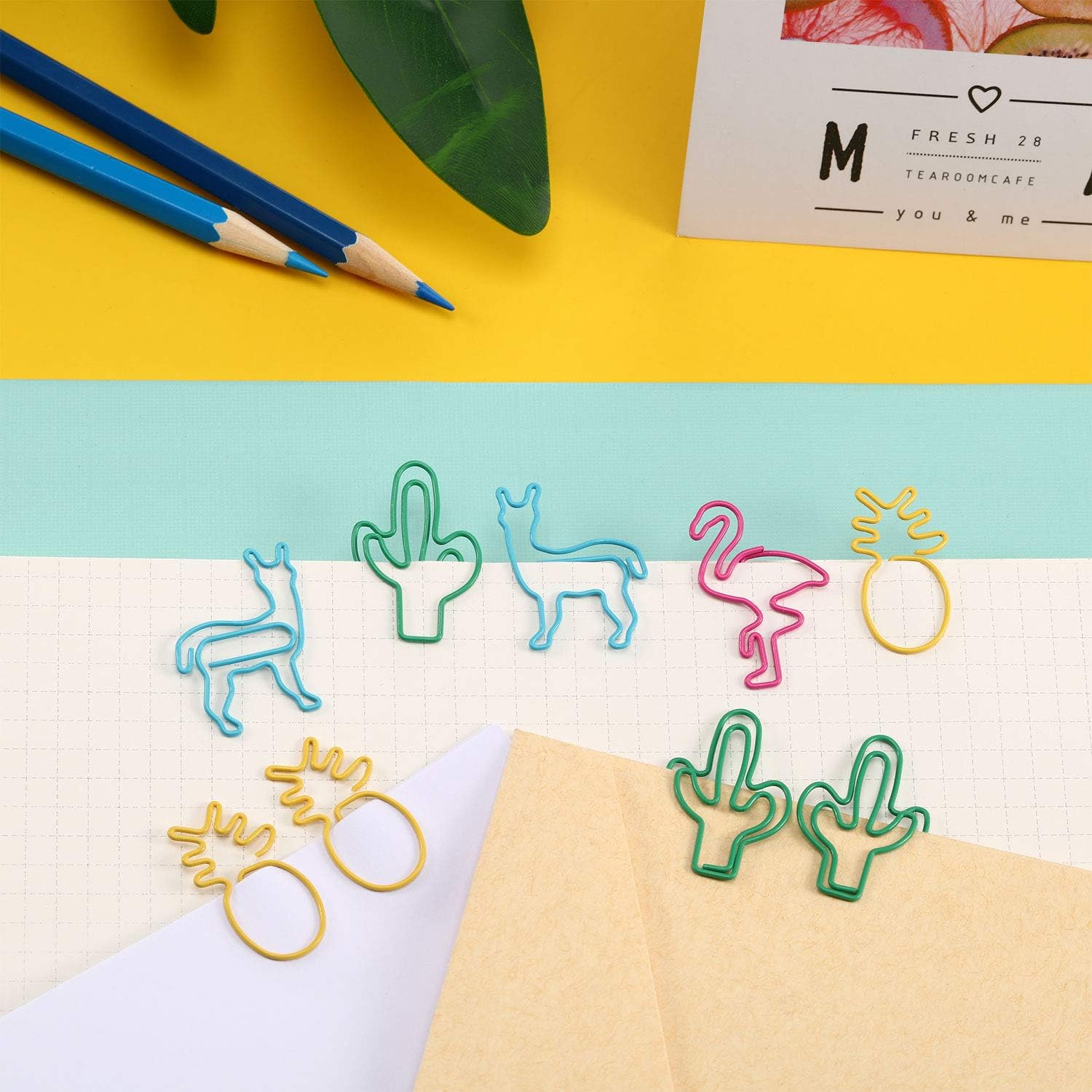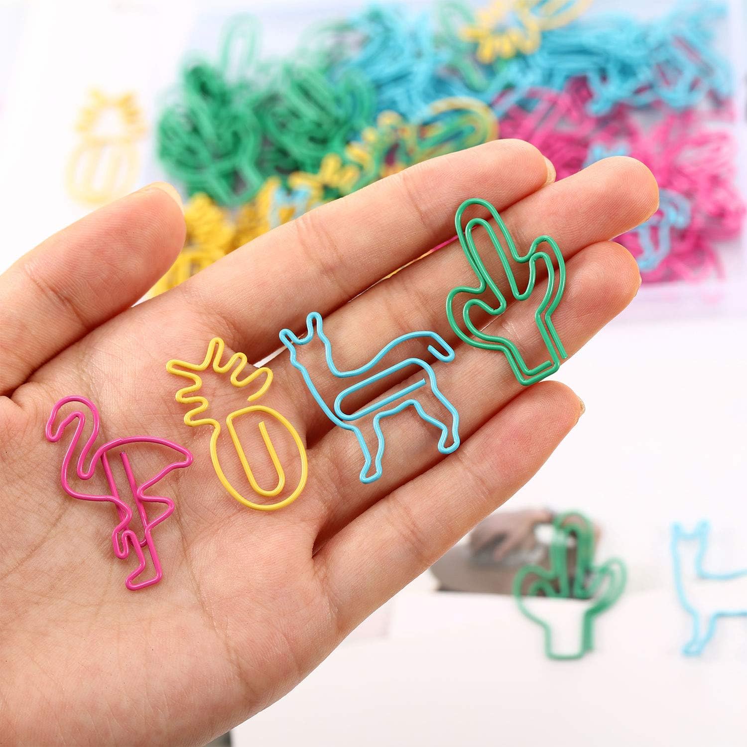You will receive 100 paper clips in 4 adorable shapes, 25 flamingos, 25 pineapples, 25 cactus, and 25 llama paperclips, packed in a transparent box for easy storage.
