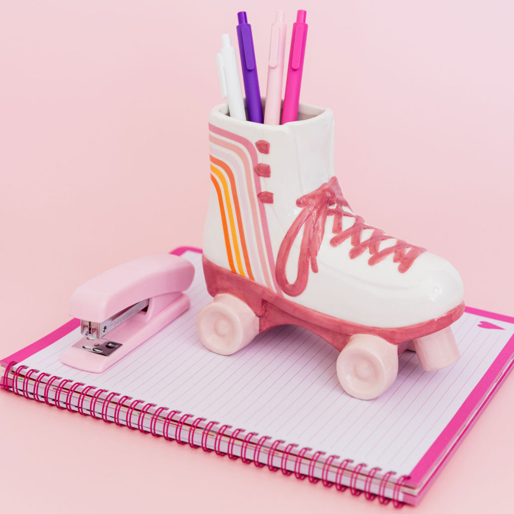 With a shiny glaze finish, compact size, and multifunctional design, this roller skate vase makes the ultimate accessory for organizing and decorating your space!
