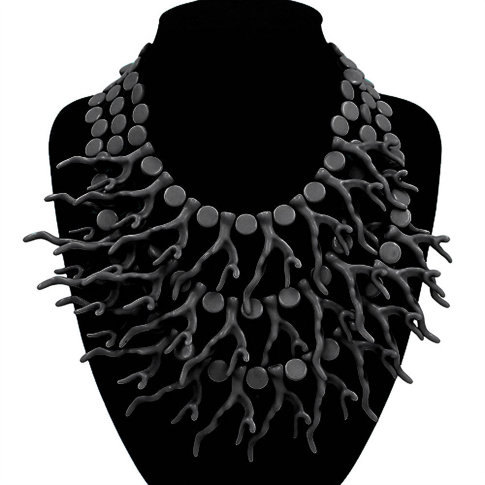 Dive into bold elegance with the Coral Crush Statement Necklace from LOVE, CALLIOPE, a striking bib-style necklace inspired by the beauty of coral reefs. Layered branch-like accents create dramatic texture and movement, making this necklace the ultimate conversation piece. Available in black, ivory, or turquoise, it adds artistic flair and instant sophistication to both evening events and standout everyday looks.