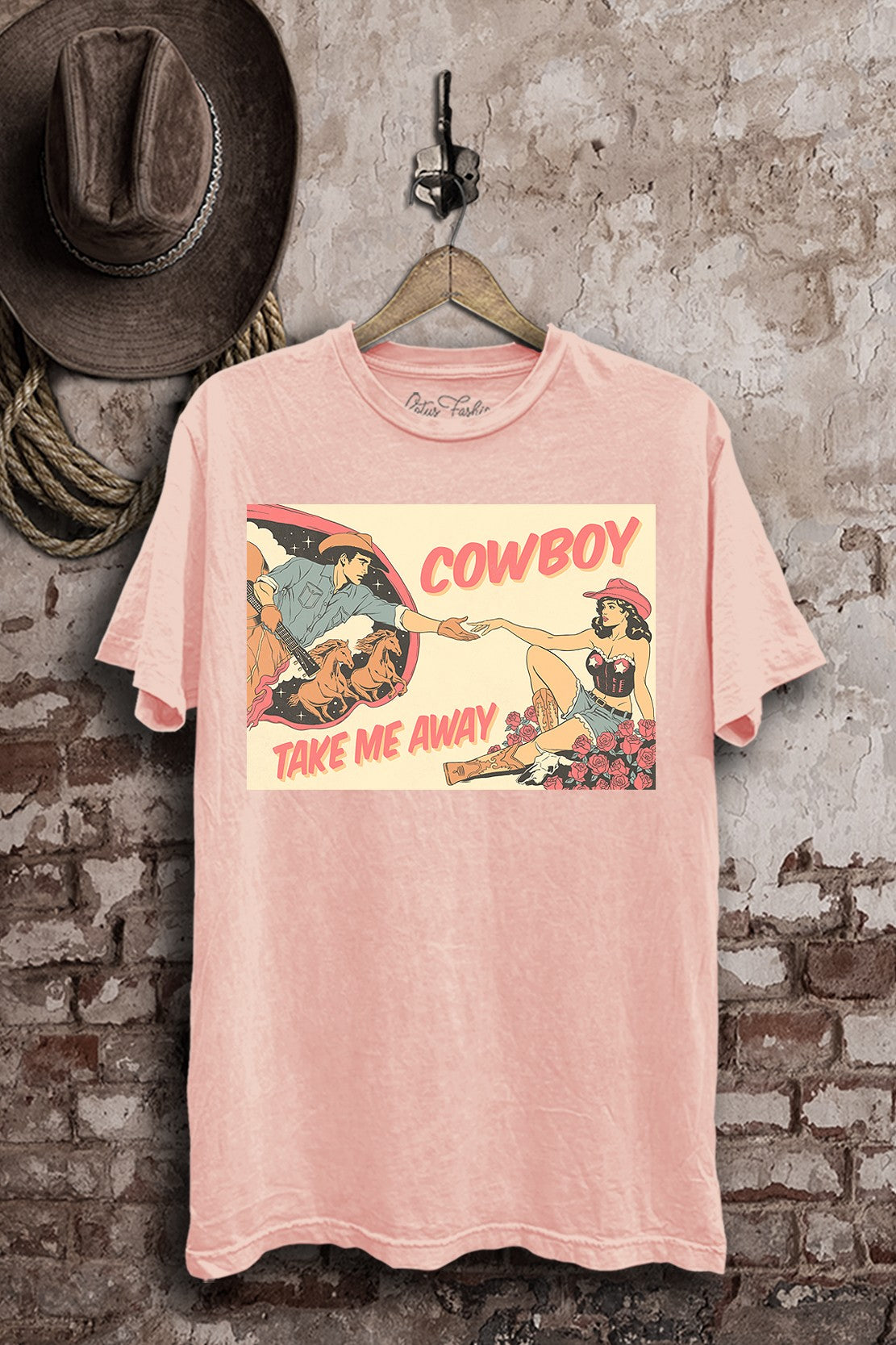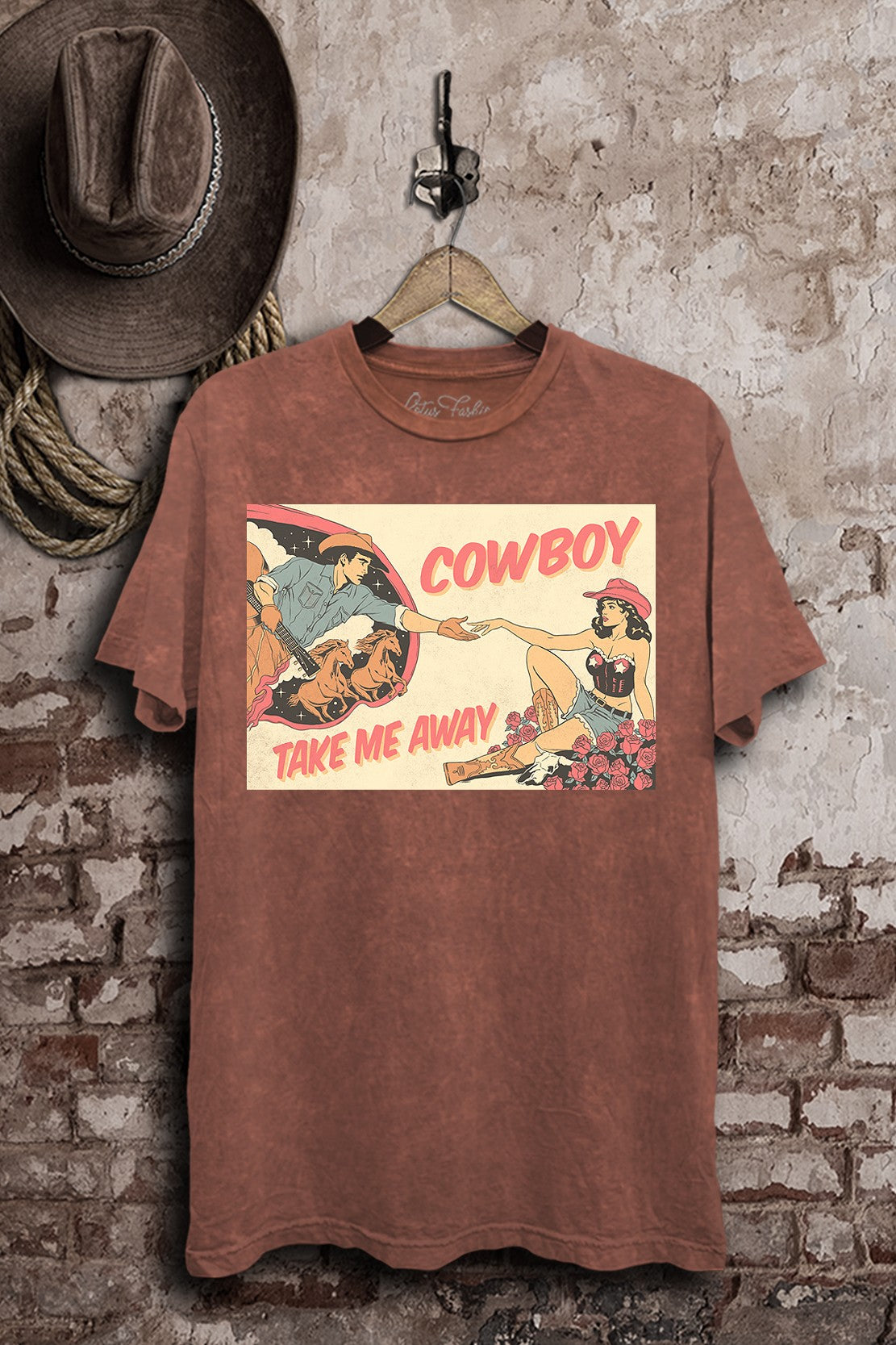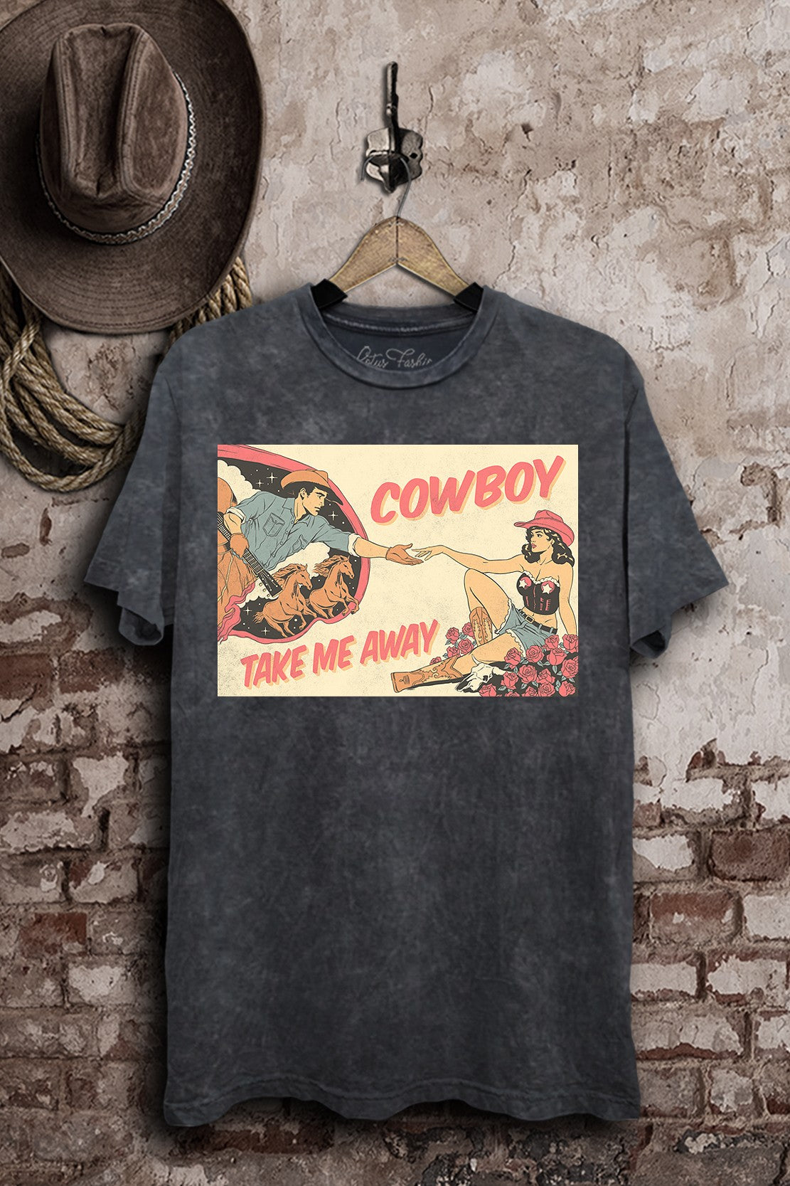 Ride into style with the Cowboy Take Me Away Graphic T-Shirt, a vintage-inspired graphic tee that’s effortlessly cool and endlessly wearable. Crafted in a mineral-washed 100% cotton, this tee is loose in all the right places with a soft drape, an open crew neckline, and slightly dropped sleeves for that laid-back retro vibe. Featuring an exclusive hand-drawn design, silk-screened in-house at our Los Angeles studio, this top is as original as it gets.