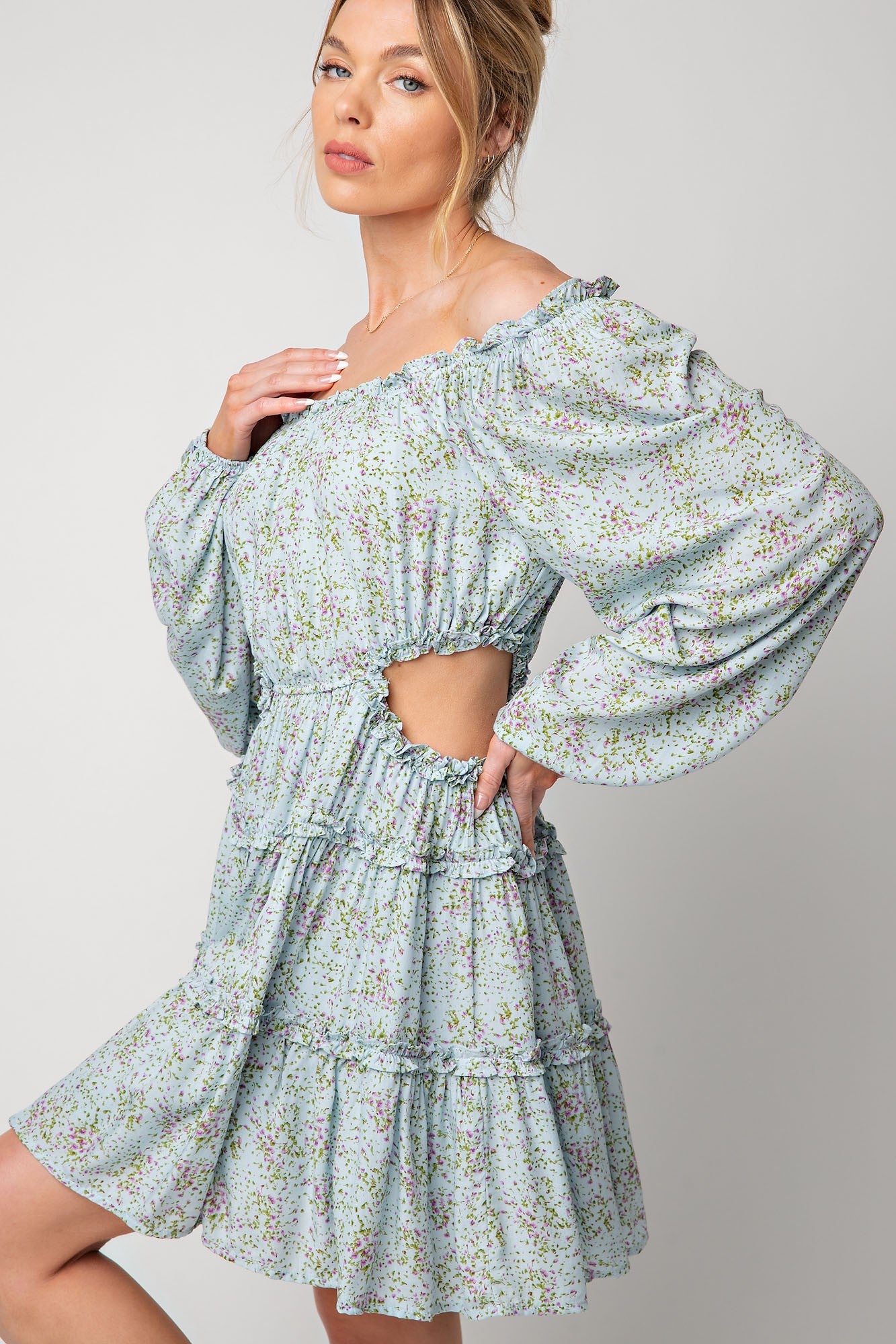 Step into feminine charm with this Ditsy Days Floral Print Mini Dress, designed with playful bubble sleeves, side cut-out detail, and a flowing ruffled hem. Lightweight and lined for comfort, this dress is perfect for sunny days, vacations, or boho-chic evenings.