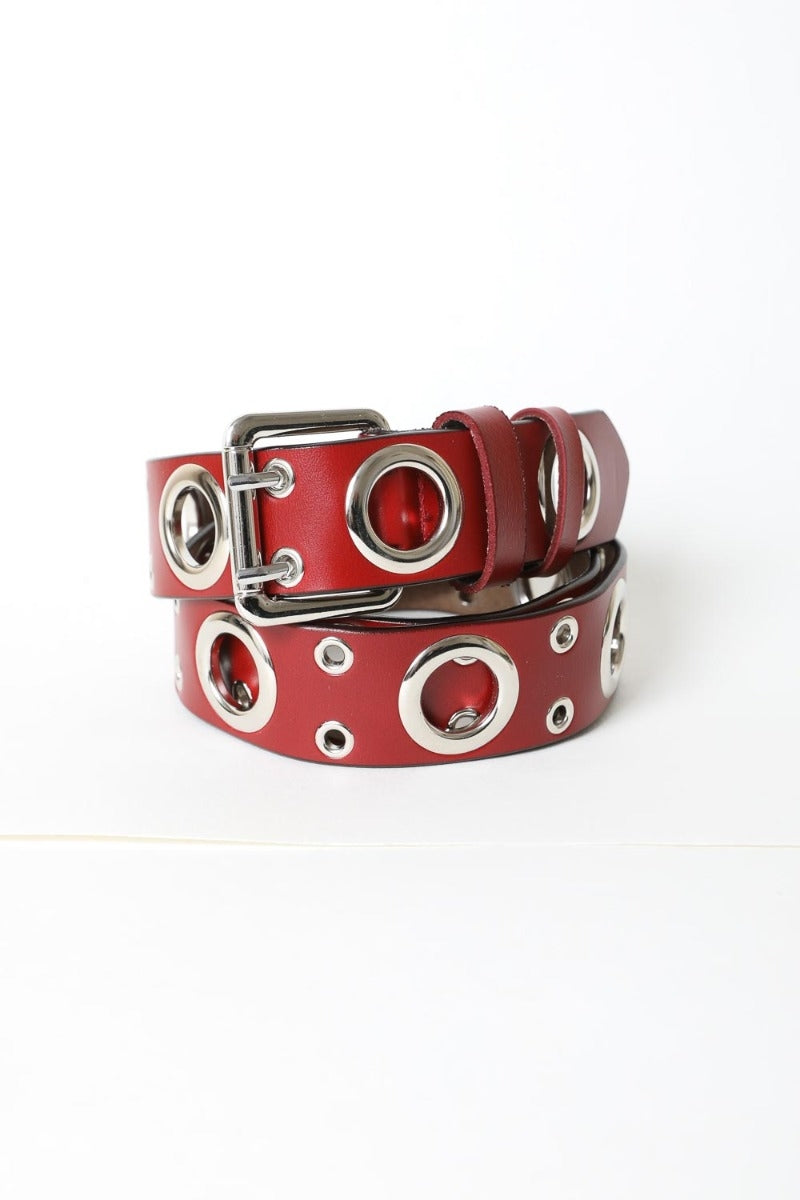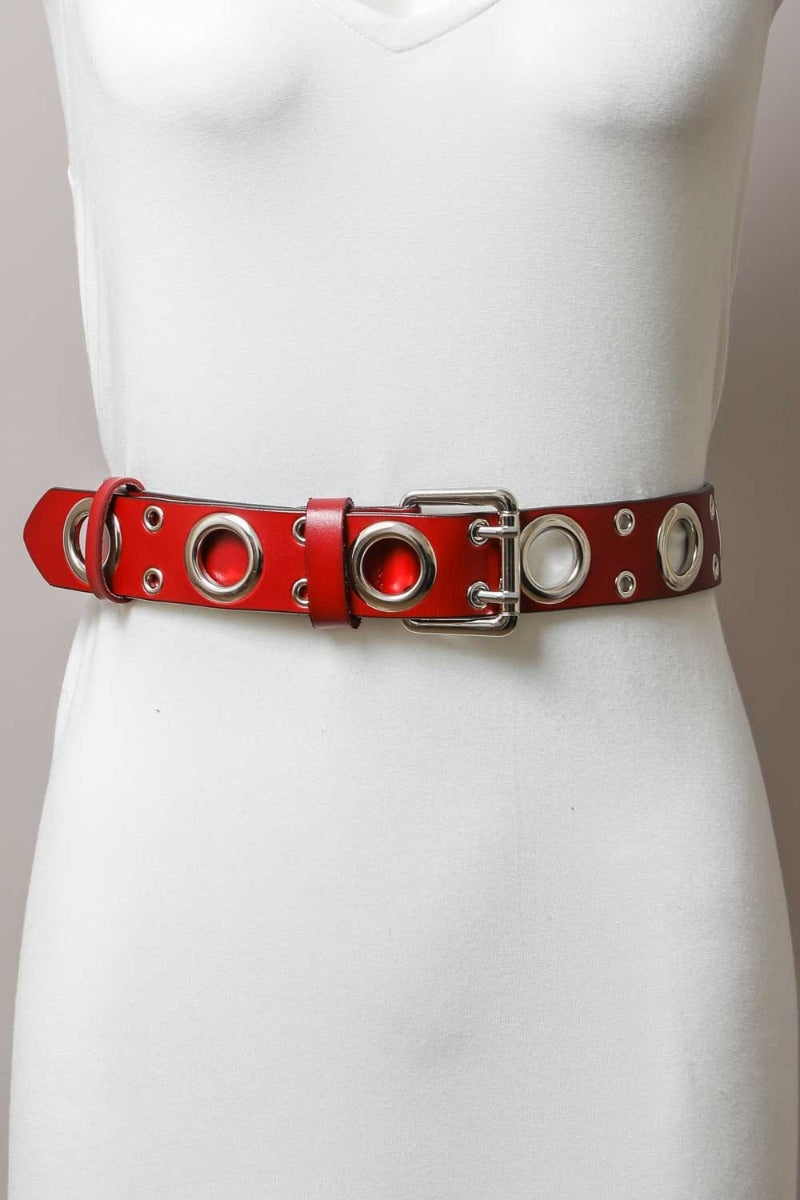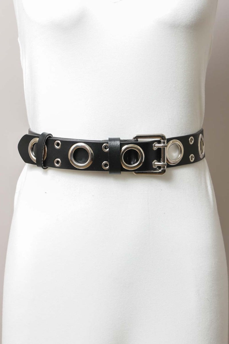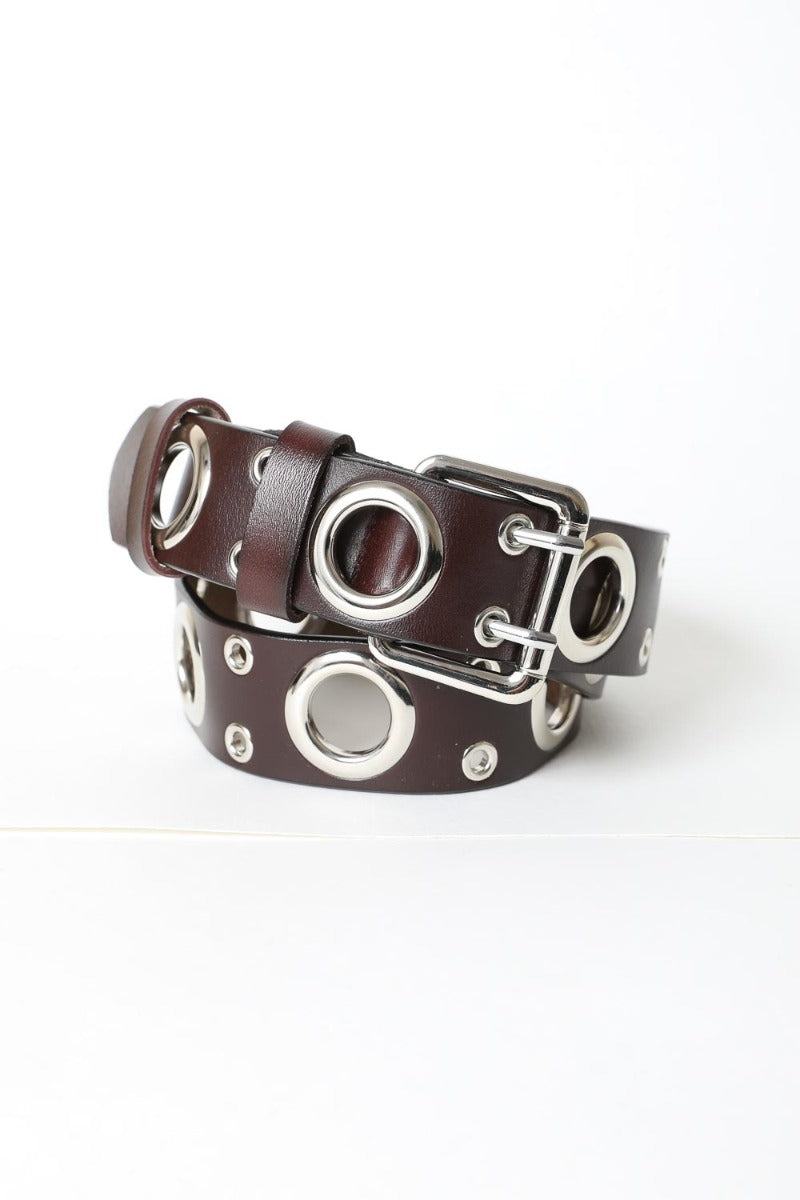 The standout feature of this belt is its unique buckle design, which includes large rings and double small rings for the double prong, adding a distinctive touch to your ensemble.