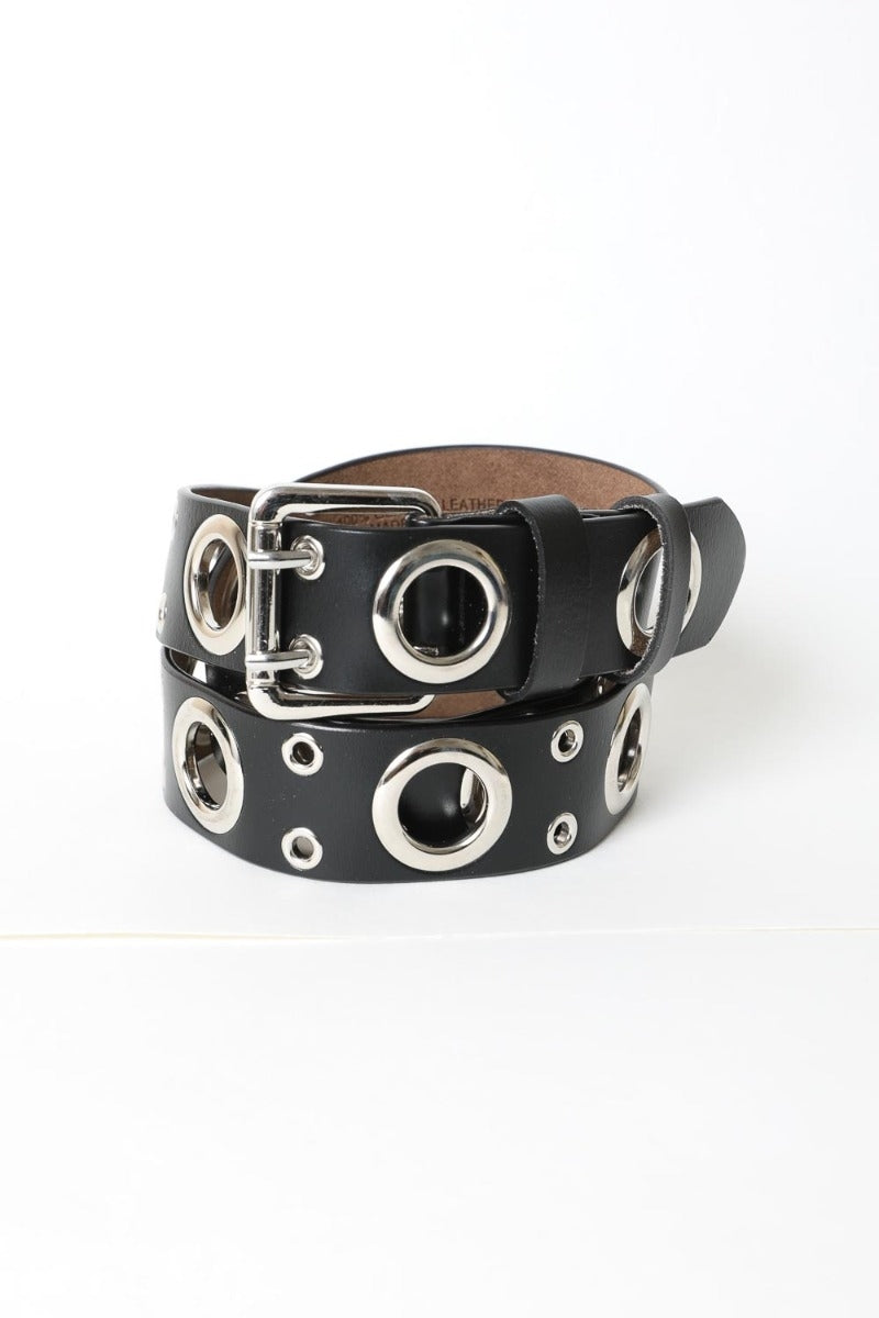 Step up your fashion game with our Double Prong Eyelet Detail Buckle Belt, a luxurious accessory crafted from genuine leather.
