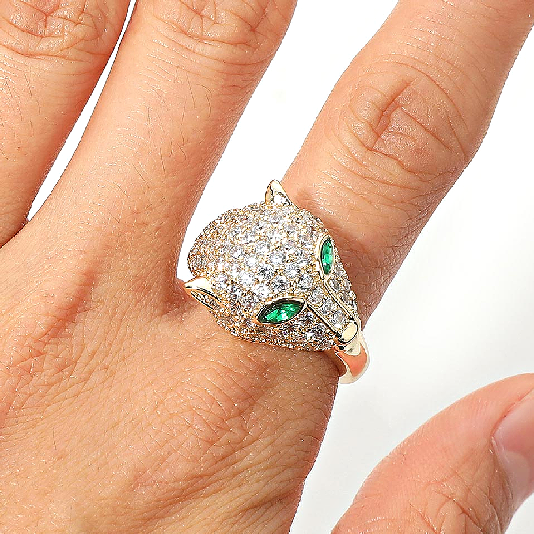 Command attention with this bold statement ring featuring a sculpted panther head paved with shimmering CZ stones and vivid eye details. Gold-Filled Band ensures quality and lasting shine. Equal parts strength and elegance, it adds instant attitude to everyday outfits and elevates evening looks with a fierce, fashion-forward gleam.