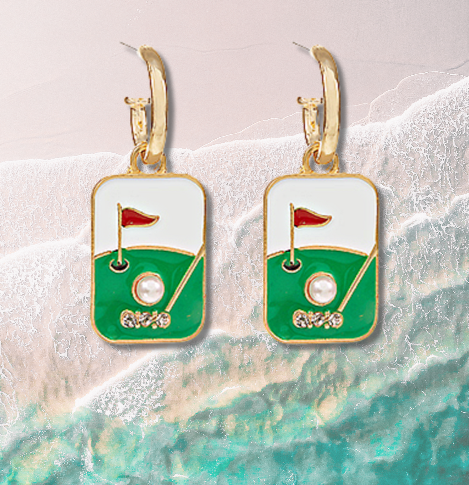 Enamel GOLF Hole In One Theme Huggie Hoop Earrings