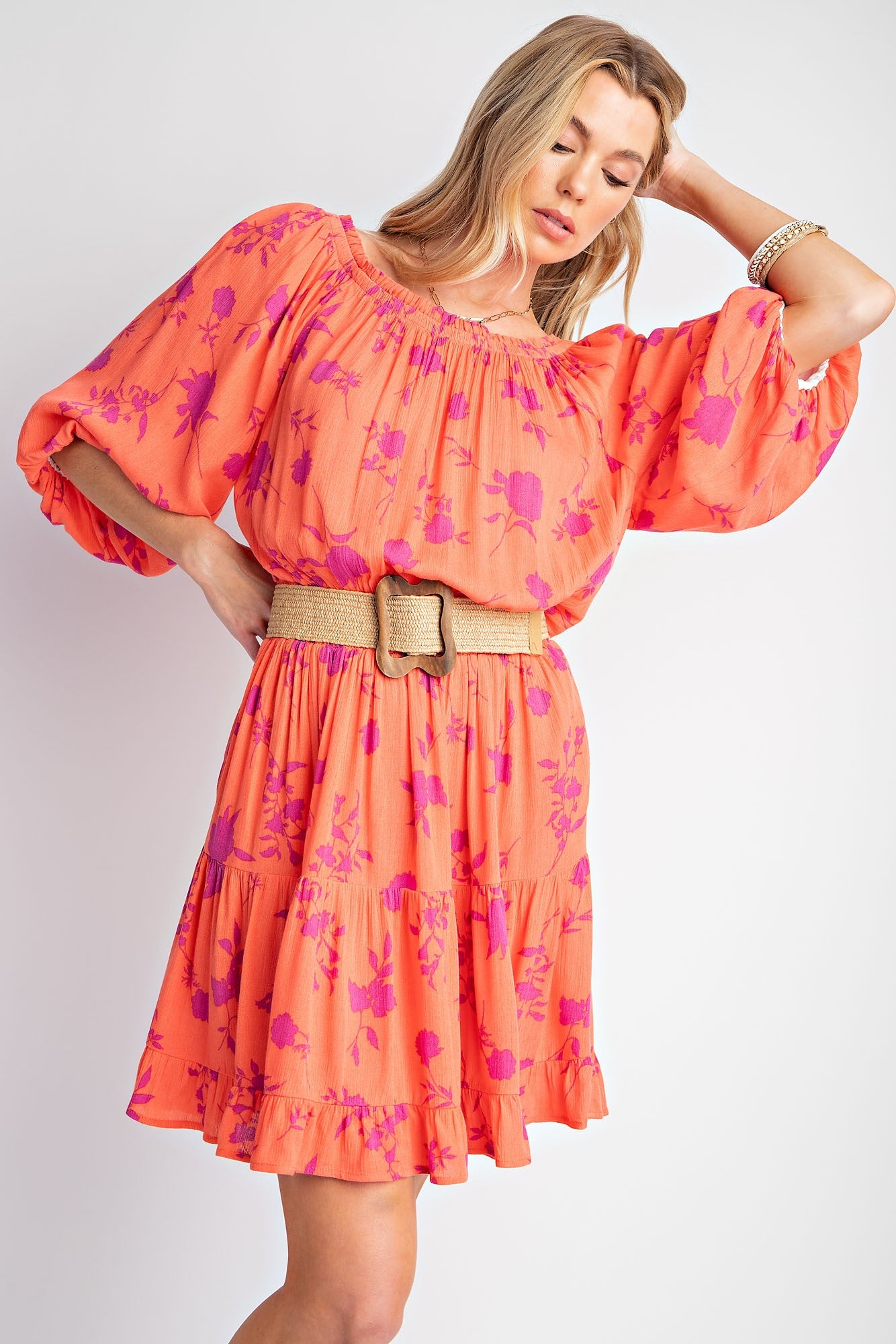 Bring a touch of bohemian charm to your wardrobe with this Floral Frenzy Gauze Fabric Mini Dress, featuring feminine details and a comfortable, relaxed fit. Perfect for brunch dates, vacations, or everyday chic styling. Belt not included.