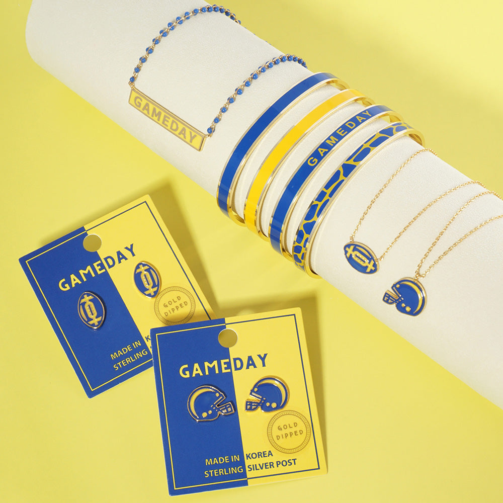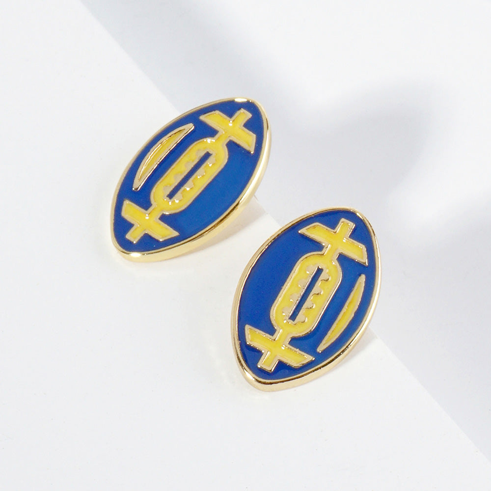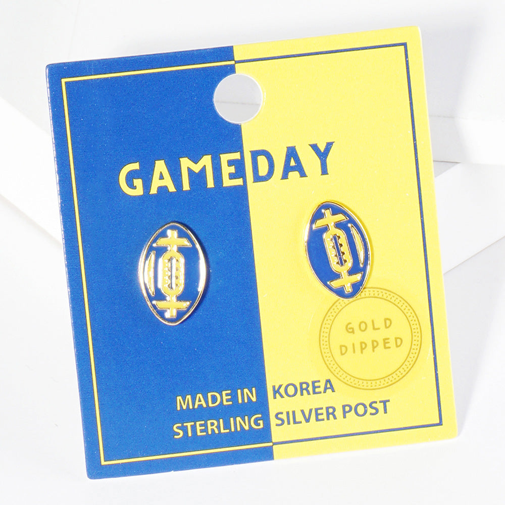 GAMEDAY 18K Gold Dipped Enamel Blue Yellow Team Earrings