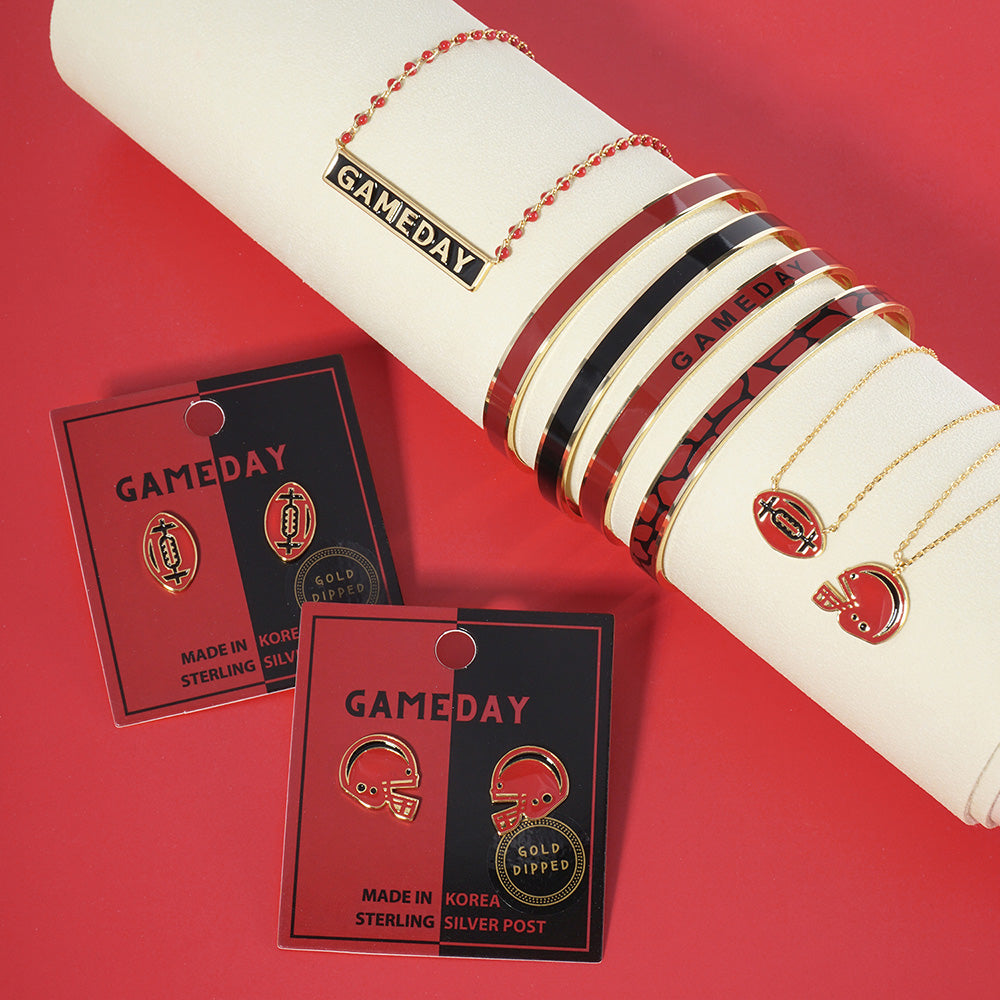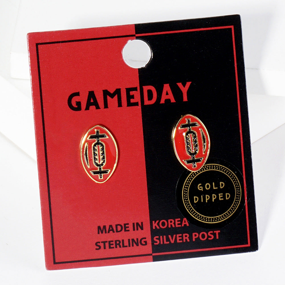 GAMEDAY 18K Gold Dipped Enamel Garnet Black Team Earrings