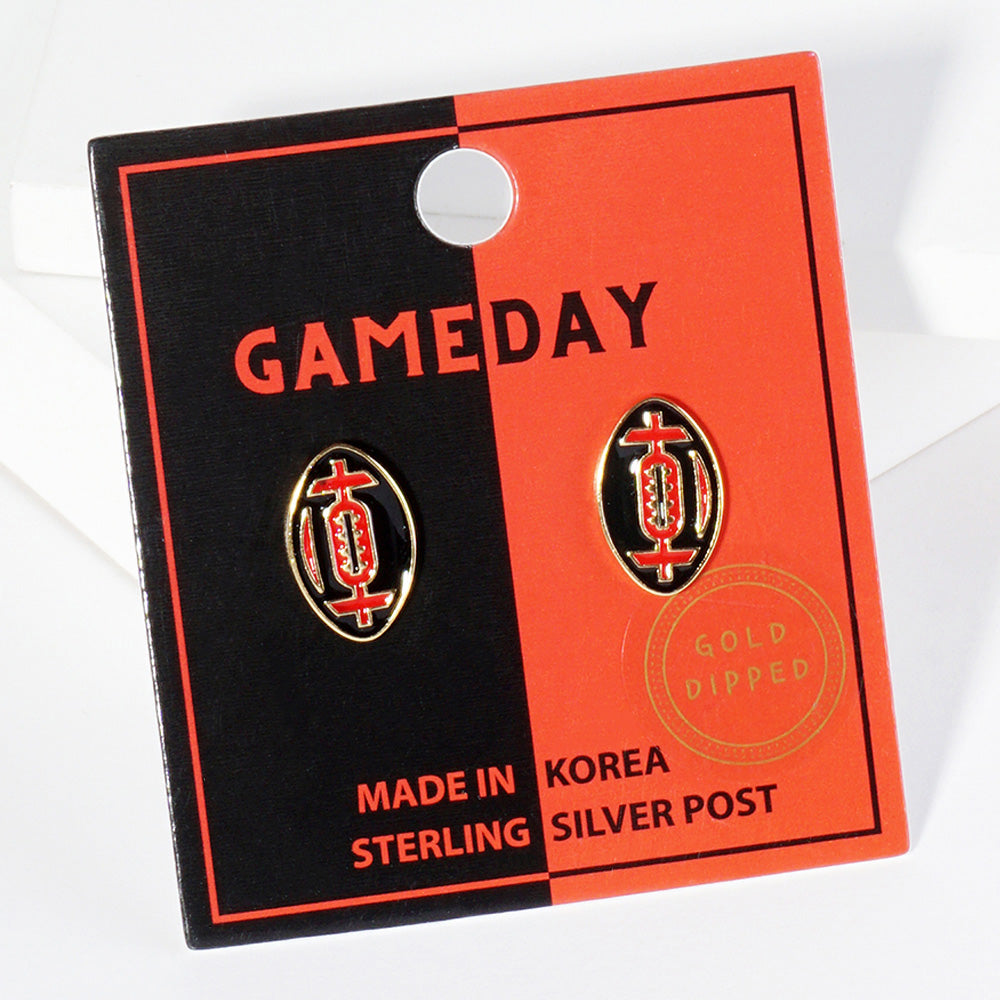 GAMEDAY 18K Gold Dipped Enamel Red Black Team Earrings