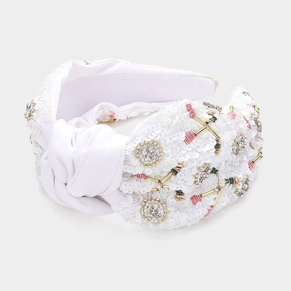 Golf Rhinestone Beaded Sequin Knot Boho Headband
