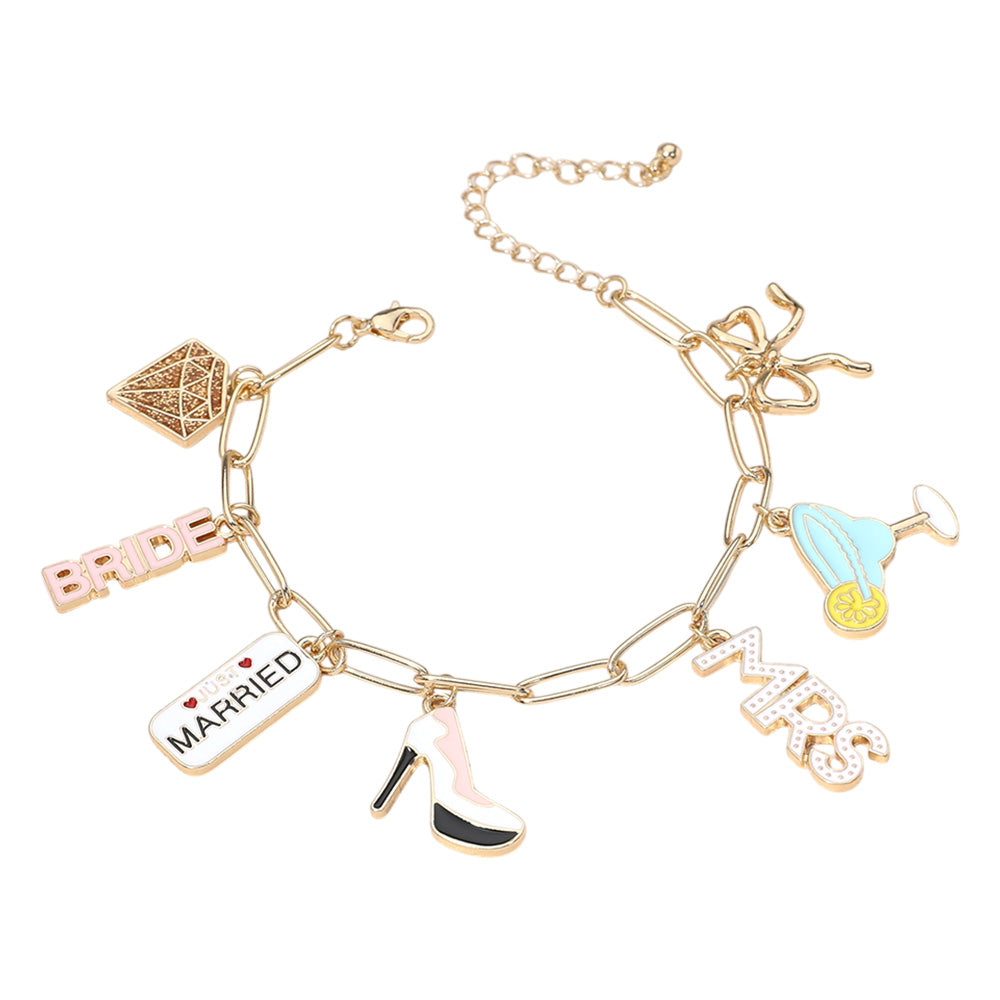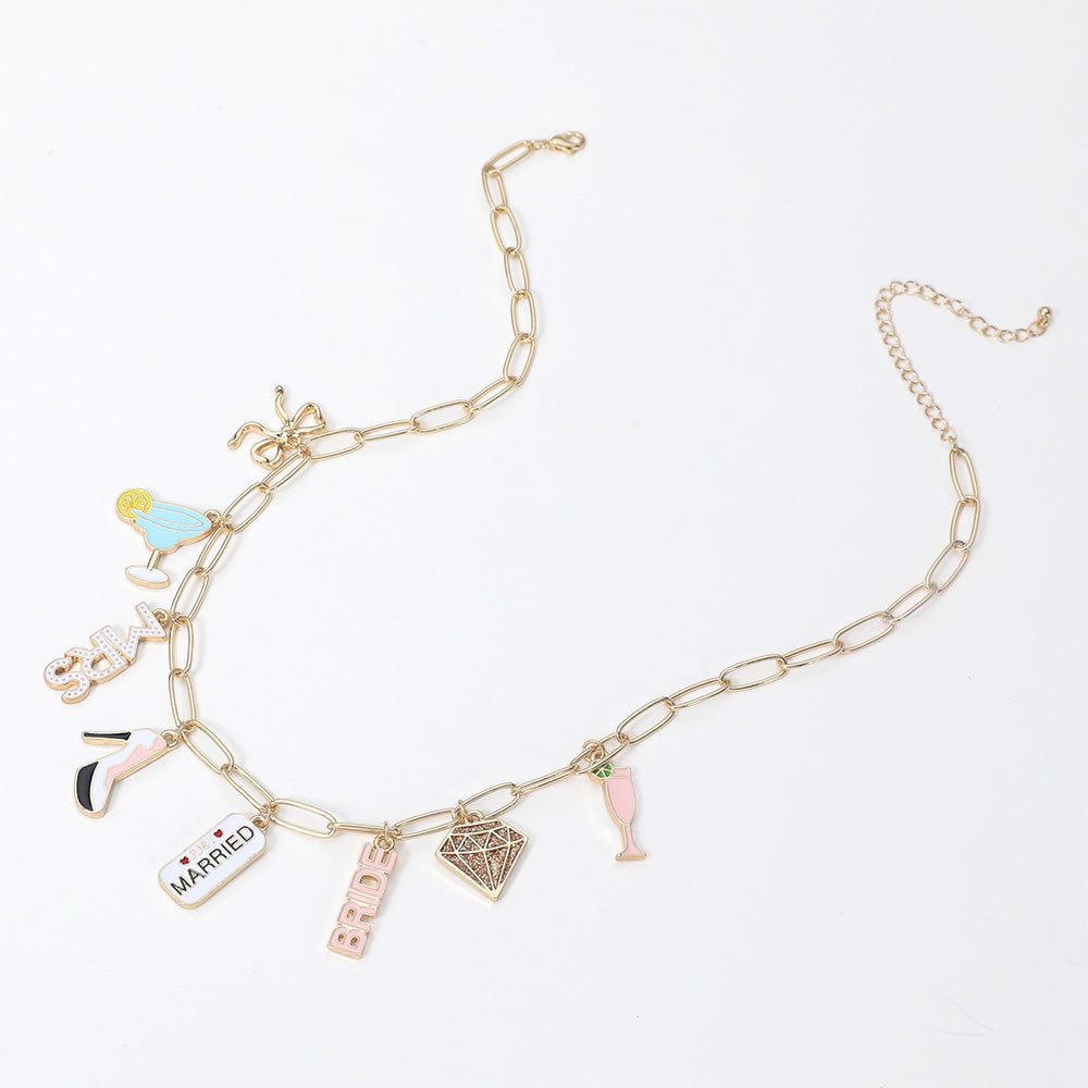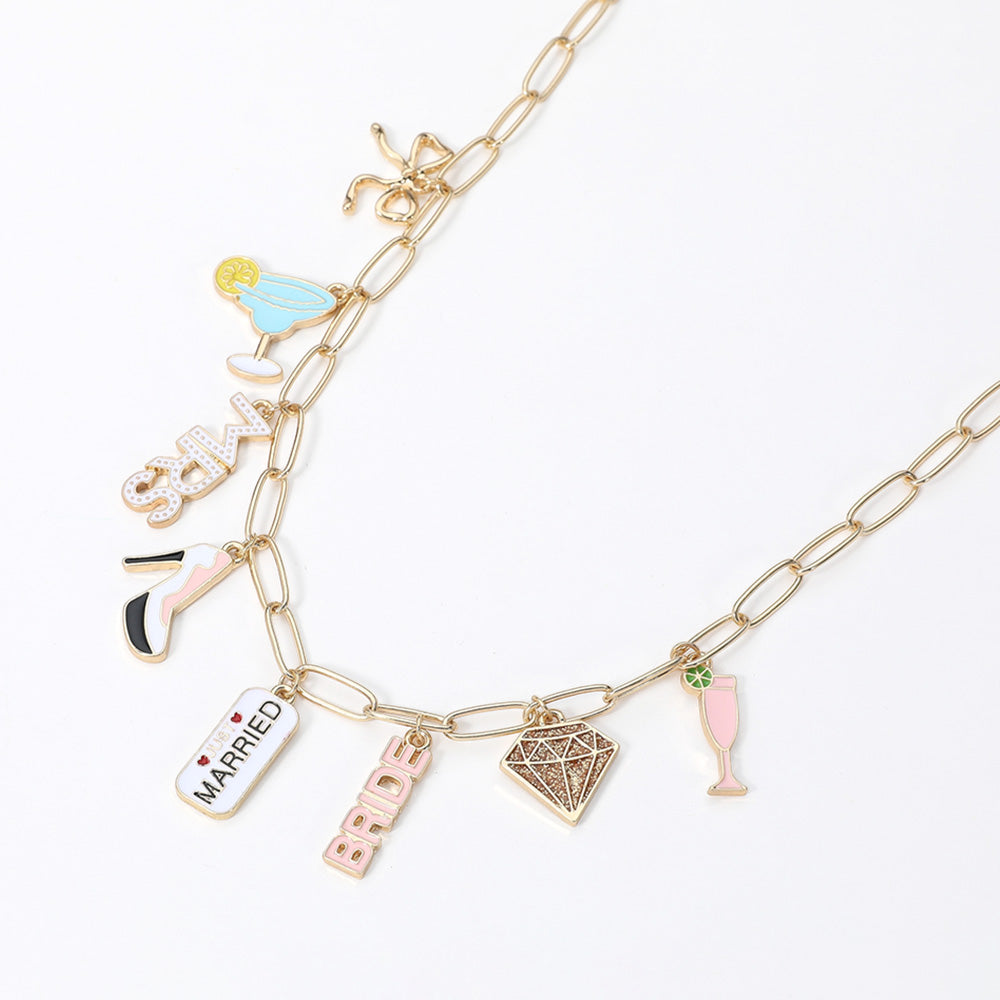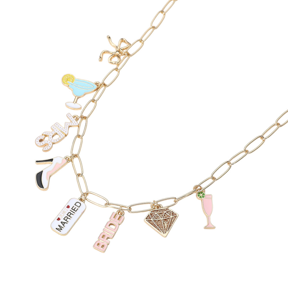 Cocktails, Bows, Diamonds, Heels & More are featured on this "charm"ing bracelet and necklace set built perfectly for the Bride.
