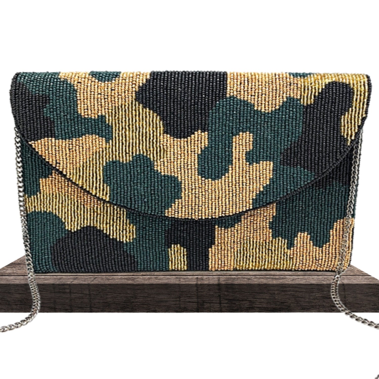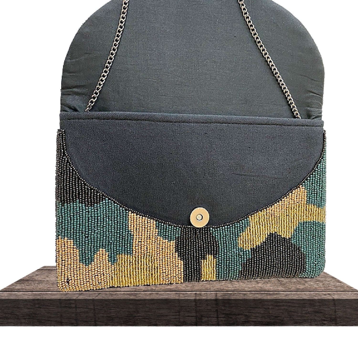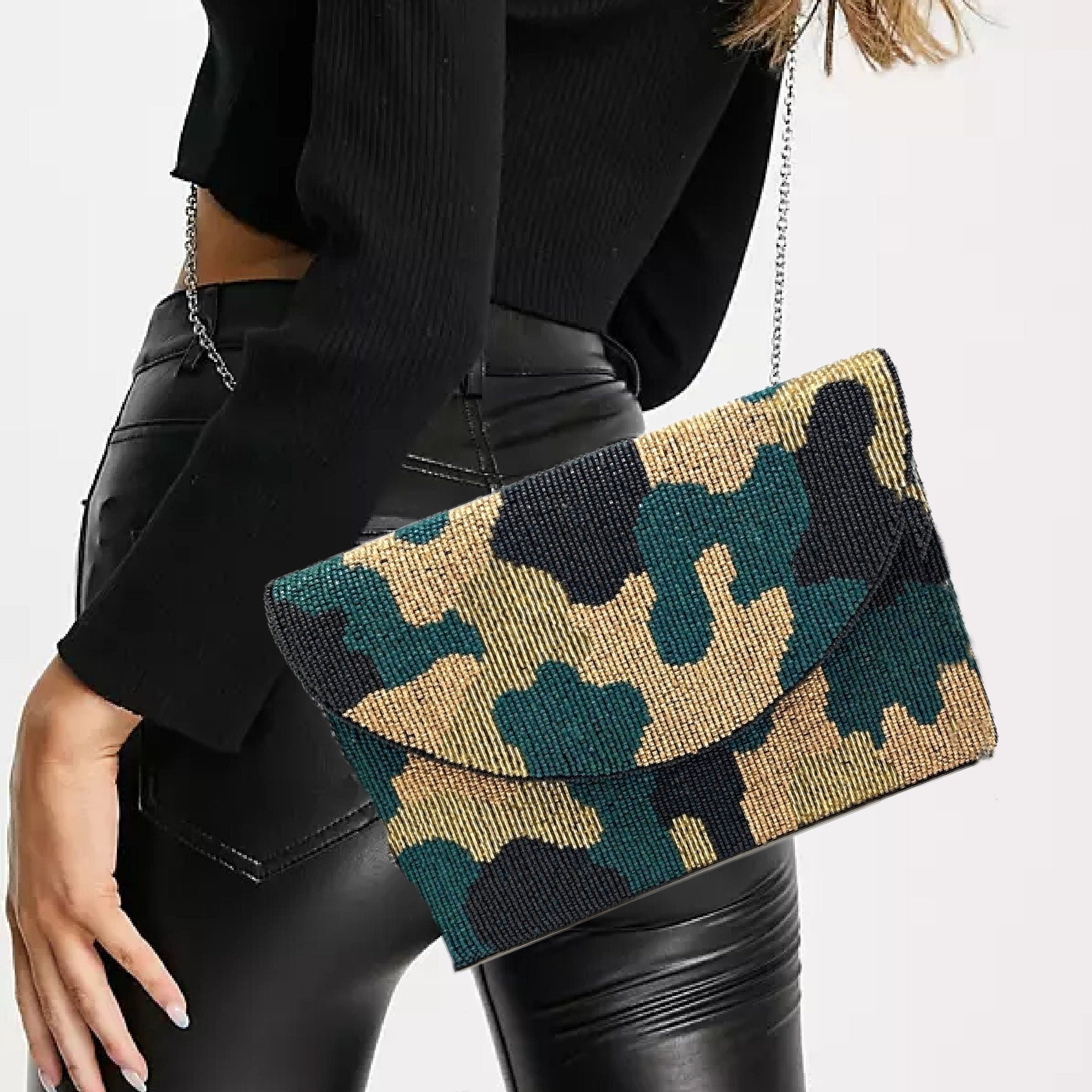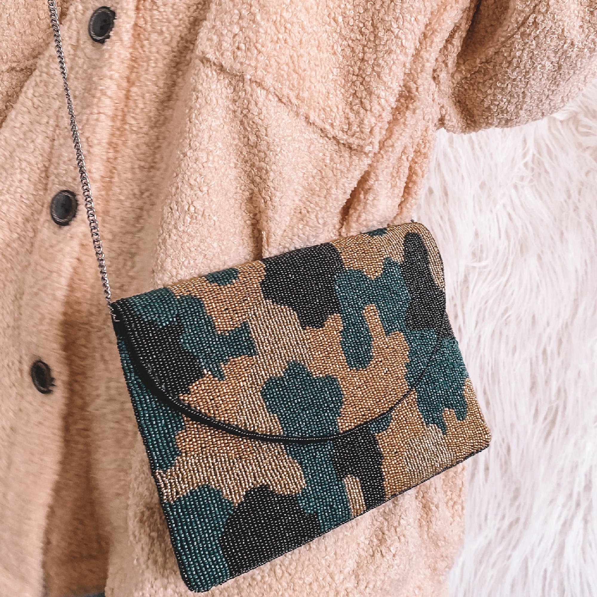 • Beaded Bag in Teal Blue/Green Camo Print
