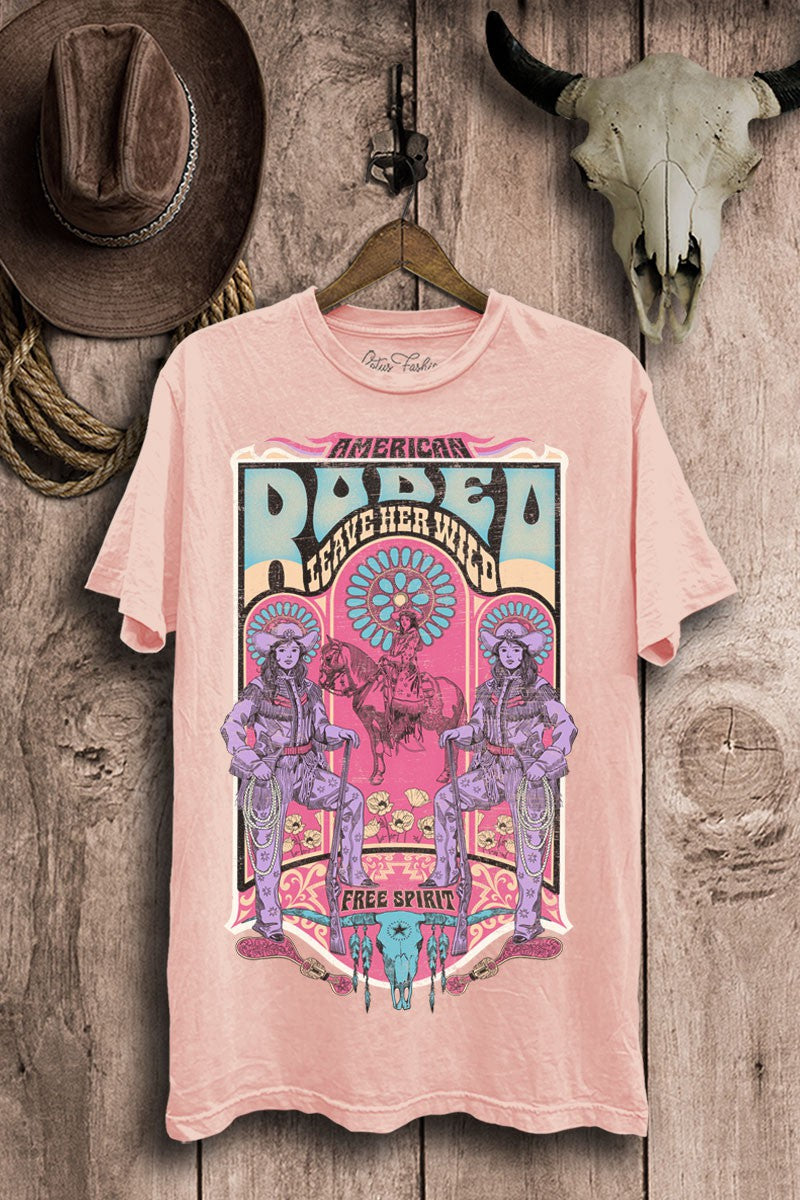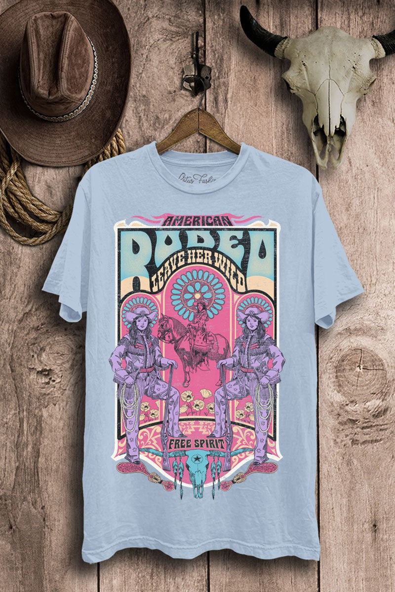 Ride into style with the Leave Her Wild American Rodeo Western T-Shirt -- a vintage-inspired graphic tee that’s effortlessly cool and endlessly wearable. Crafted in a mineral-washed 100% cotton, this tee is loose in all the right places with a soft drape, an open crew neckline, and slightly dropped sleeves for that laid-back retro vibe. Featuring an exclusive hand-drawn design, silk-screened in-house at our Los Angeles studio, this top is as original as it gets.