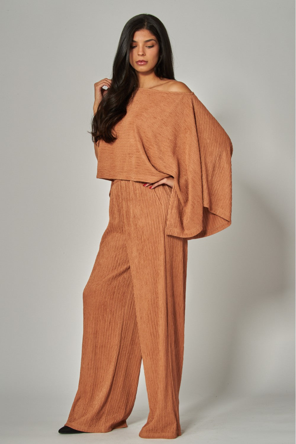 Indulgence meets ease in this camel crinkled plissé lounge set, designed to elevate every off-duty moment. The luxurious plissé texture catches the light with a soft sheen, delivering sophistication without sacrificing comfort.