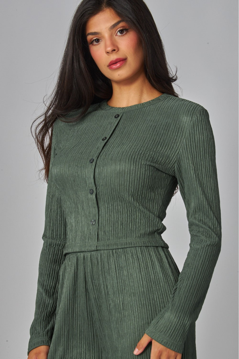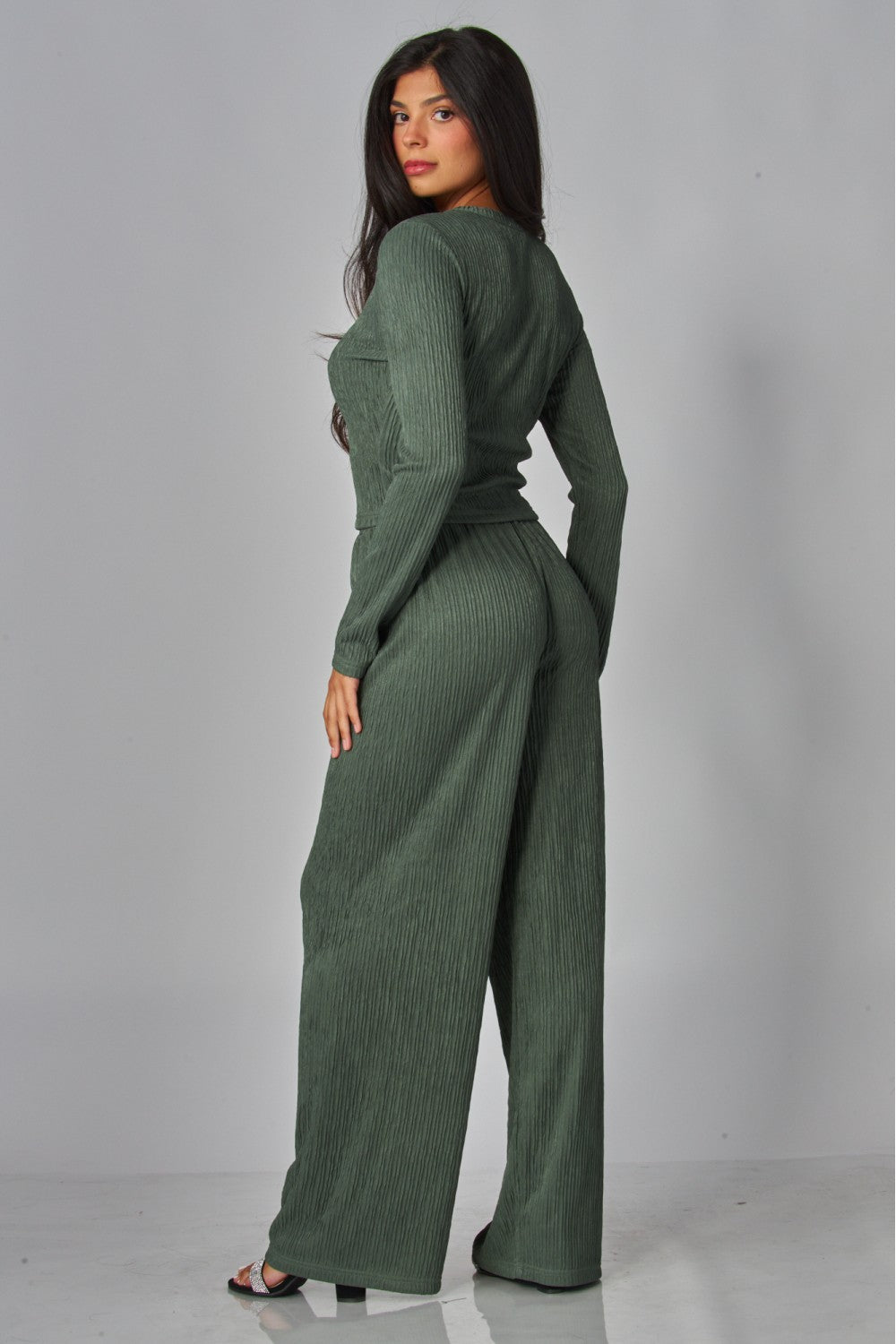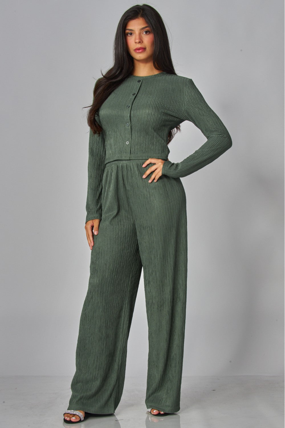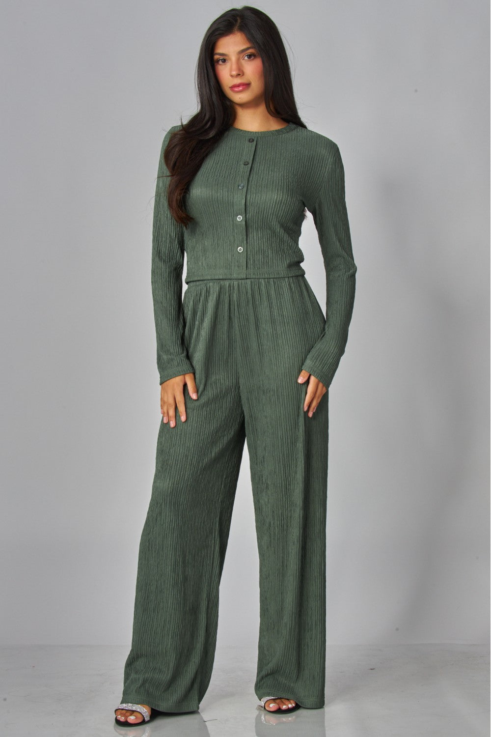 The License To Lounge Pants Set is your new “out the door or back to bed” uniform. Crafted in a soft, finely pleated plissé, this matching button-front top and relaxed wide-leg pant drape with an easy elegance. Effortlessly polished, endlessly comfortable, and ready for anything from brunch to binge-watching.