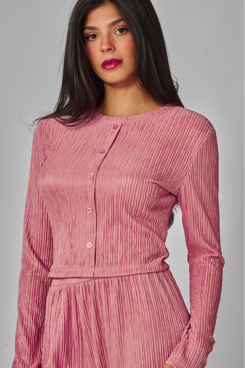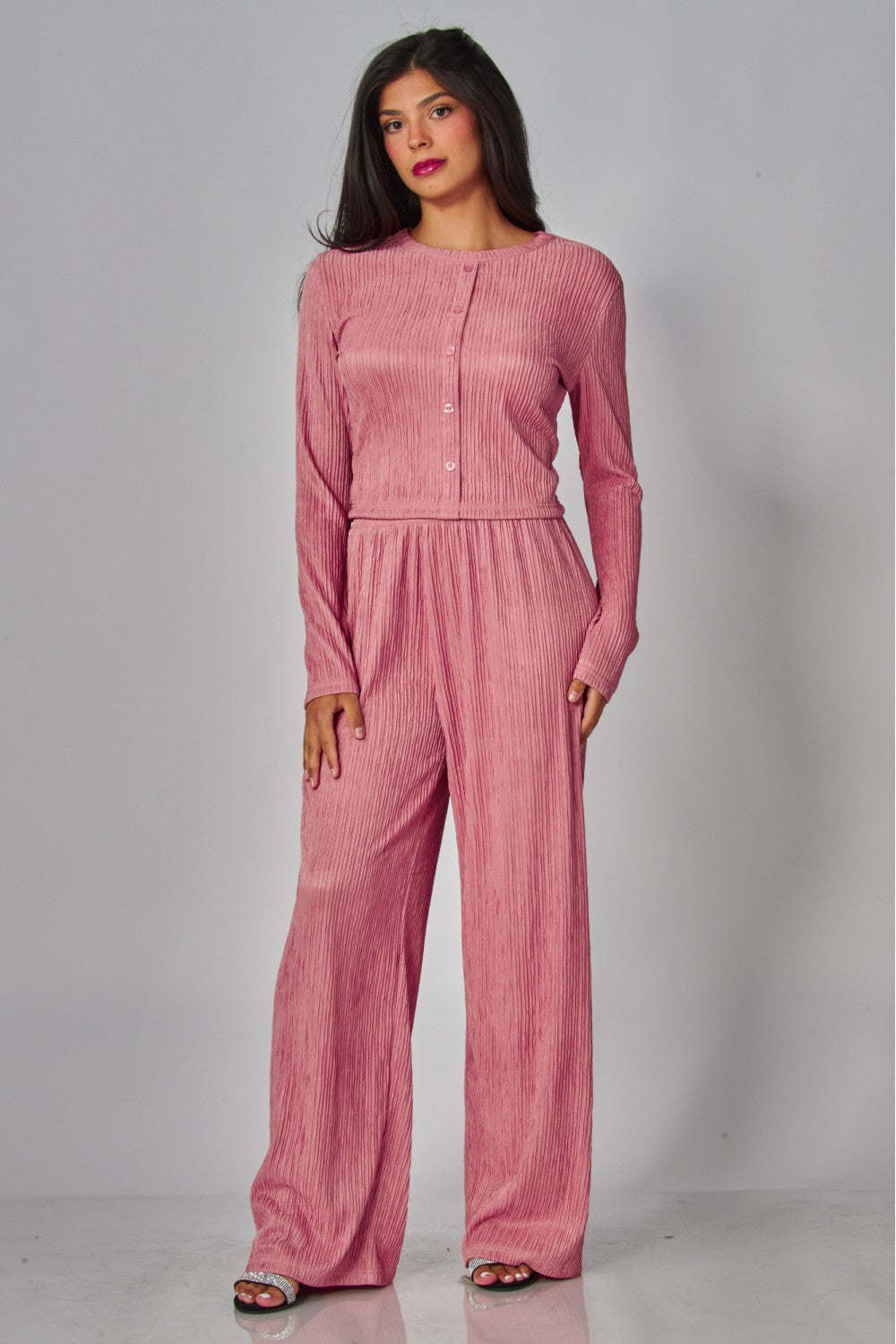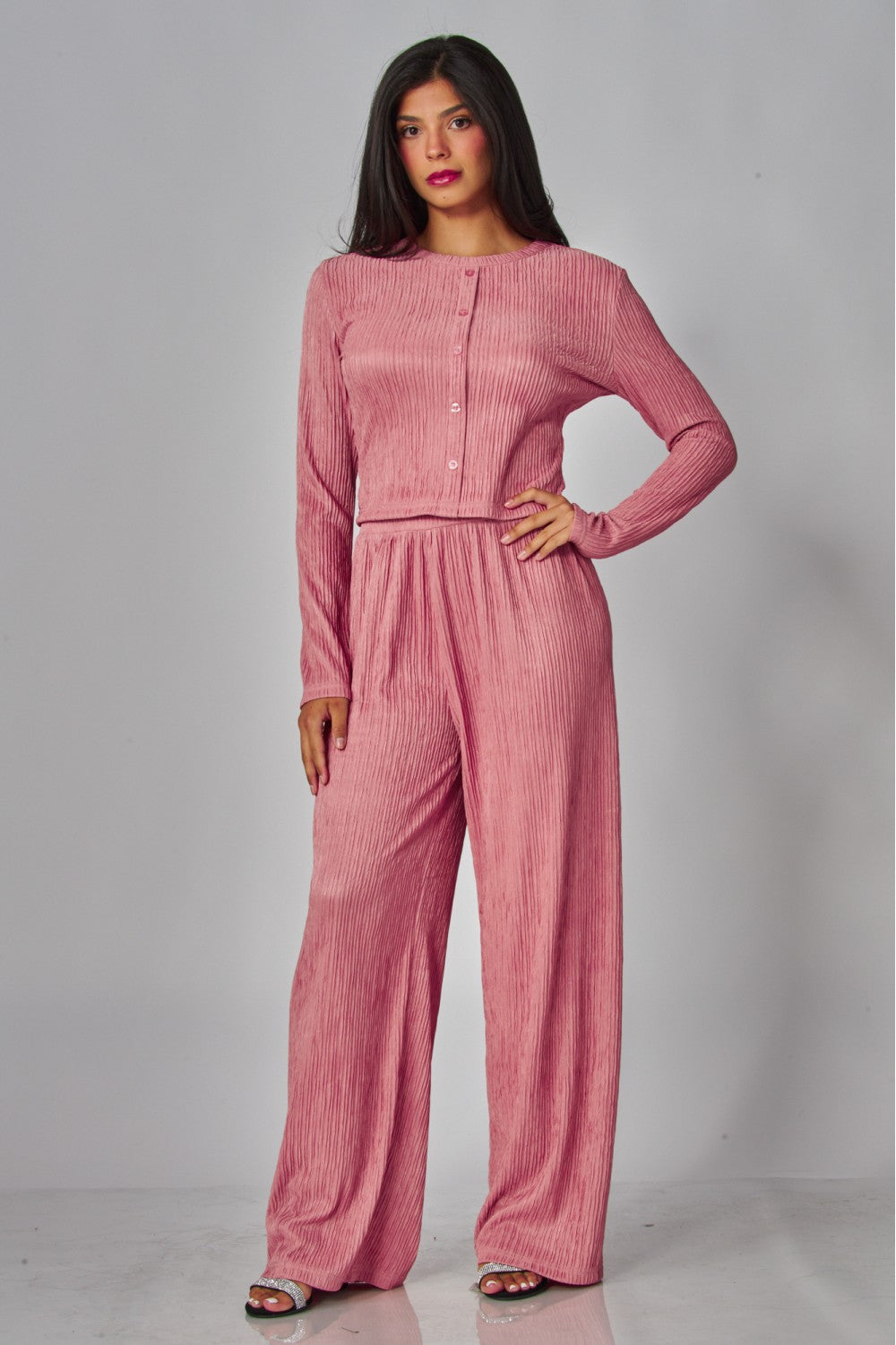 The License To Lounge Pants Set is your new “out the door or back to bed” uniform. Crafted in a soft, finely pleated plissé, this matching button-front top and relaxed wide-leg pant drape with an easy elegance. Effortlessly polished, endlessly comfortable, and ready for anything from brunch to binge-watching.