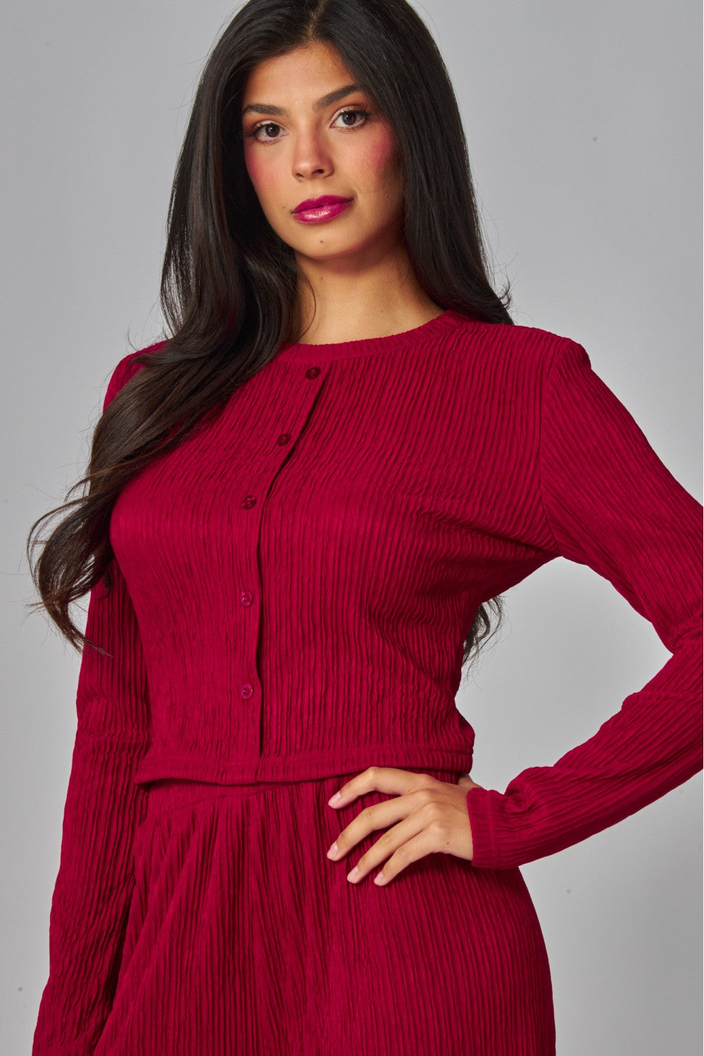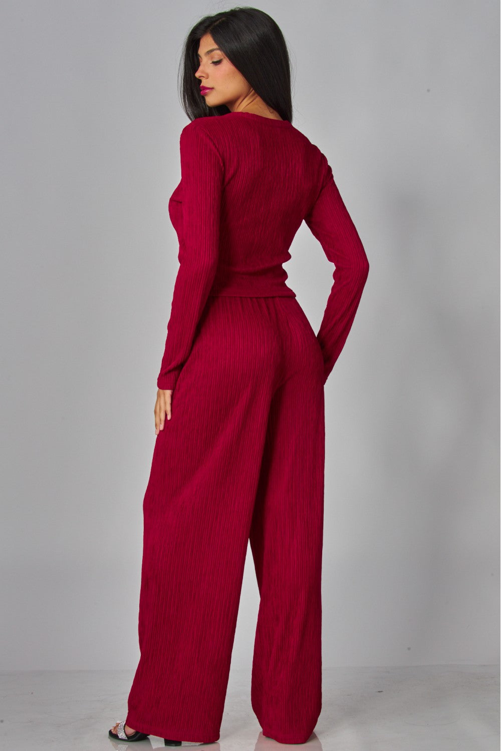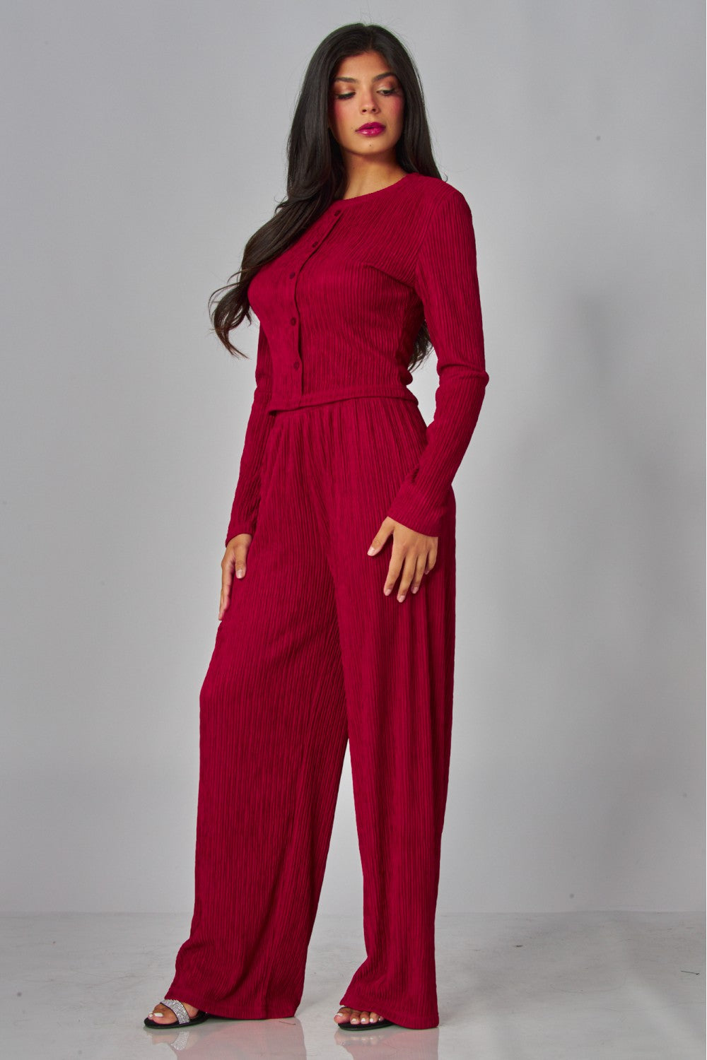 The License To Lounge Pants Set is your new “out the door or back to bed” uniform. Crafted in a soft, finely pleated plissé, this matching button-front top and relaxed wide-leg pant drape with an easy elegance. Effortlessly polished, endlessly comfortable, and ready for anything from brunch to binge-watching.