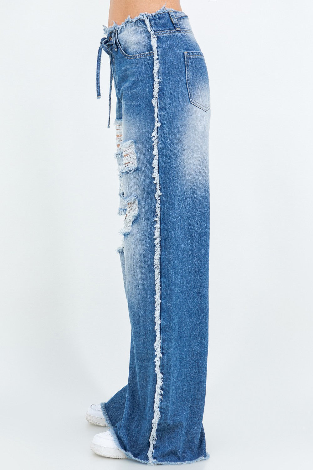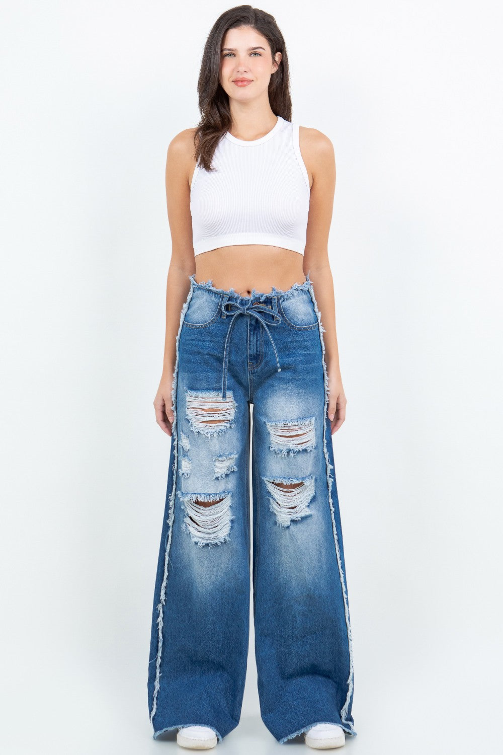 #widelegjeans #distressedjeans #drawstringjeans #slouchystyle #livedindenim #offdutylook #streetstyleinspo #boutiquejeans #calliopestyle #womensfashiontrends