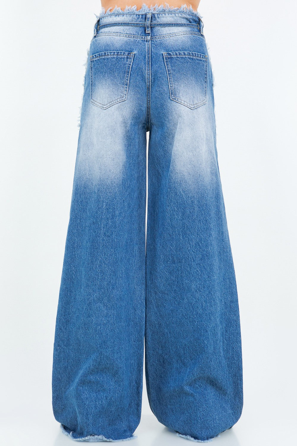The Luck of the Draw Distressed Jeans bring a laid-back, lived-in look with their wide leg silhouette, distressed detailing, and frayed hem finish. Designed with both a traditional button closure and an adjustable drawstring waist trim, these jeans offer customizable comfort with a casual, relaxed drape. Ideal for effortless styling with tees, tanks, oversized knits, and off-duty layers.