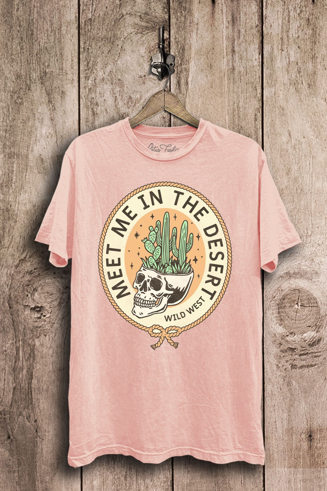 Ride into style with the Meet Me In The Desert Western Graphic T-Shirt, a vintage-inspired graphic tee thatβs effortlessly cool and endlessly wearable. Crafted in a mineral-washed 100% cotton, this tee is loose in all the right places with a soft drape, an open crew neckline, and slightly dropped sleeves for that laid-back retro vibe. Featuring an exclusive hand-drawn design, silk-screened in-house at our Los Angeles studio, this top is as original as it gets.
