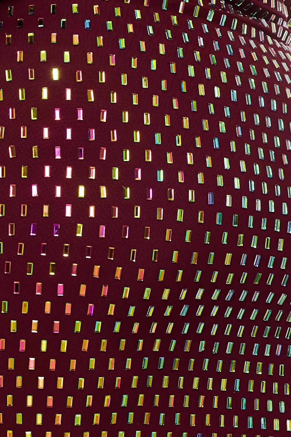 Step into the spotlight with the Mirrored Image Curvy Party Dress in Wine, a sultry plus-size mini that glitters like a thousand little lights. Covered in tiny mirrored tiles on sheer power mesh, this off-the-shoulder dress brings bold disco-glam energy while still flattering your curves. With sheer long sleeves, an easy slip-on design, and moderate stretch, this look combines show-stopping sparkle with comfort.