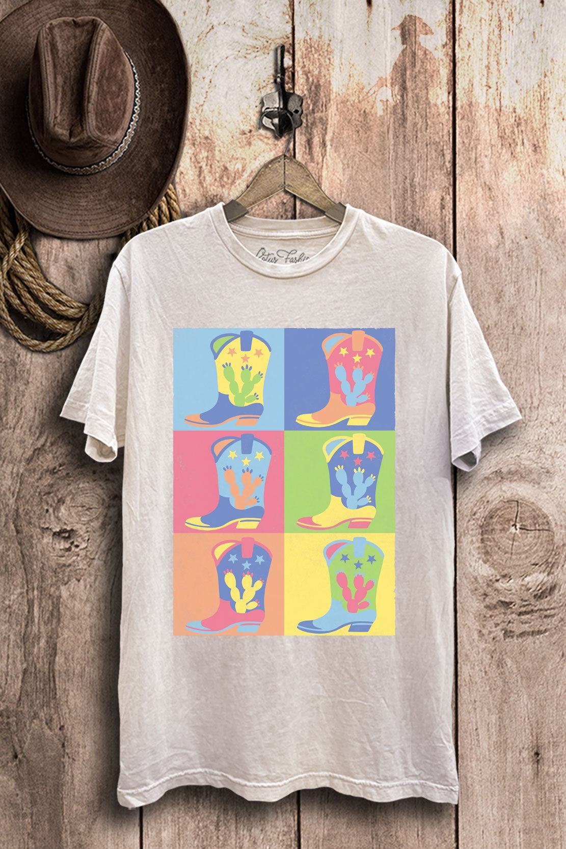 Ride into style with the Never Enough Pairs Boots Western Graphic T-Shirt -- a vintage-inspired graphic tee that’s effortlessly cool and endlessly wearable. Crafted in a mineral-washed 100% cotton, this tee is loose in all the right places with a soft drape, an open crew neckline, and slightly dropped sleeves for that laid-back retro vibe. Featuring an exclusive hand-drawn design, silk-screened in-house at our Los Angeles studio, this top is as original as it gets.