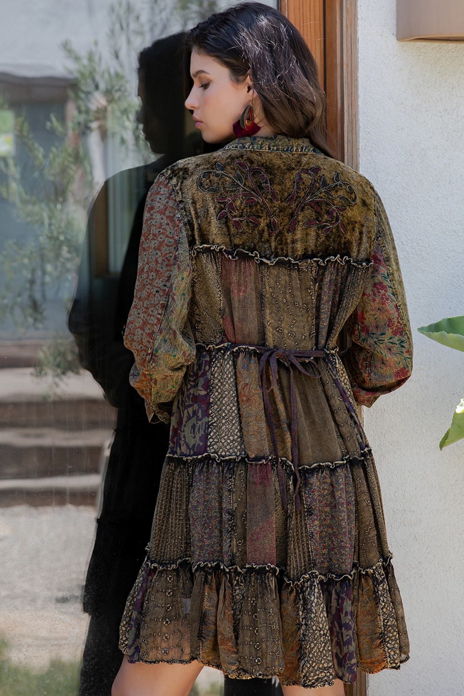 #bohostyle #patchworkdress #bohoapparel #fallfashion #winterfashion #lovecalliope #slowfashion #shopsmall #effortlesschic #artisanalstyle #uniqueclothing