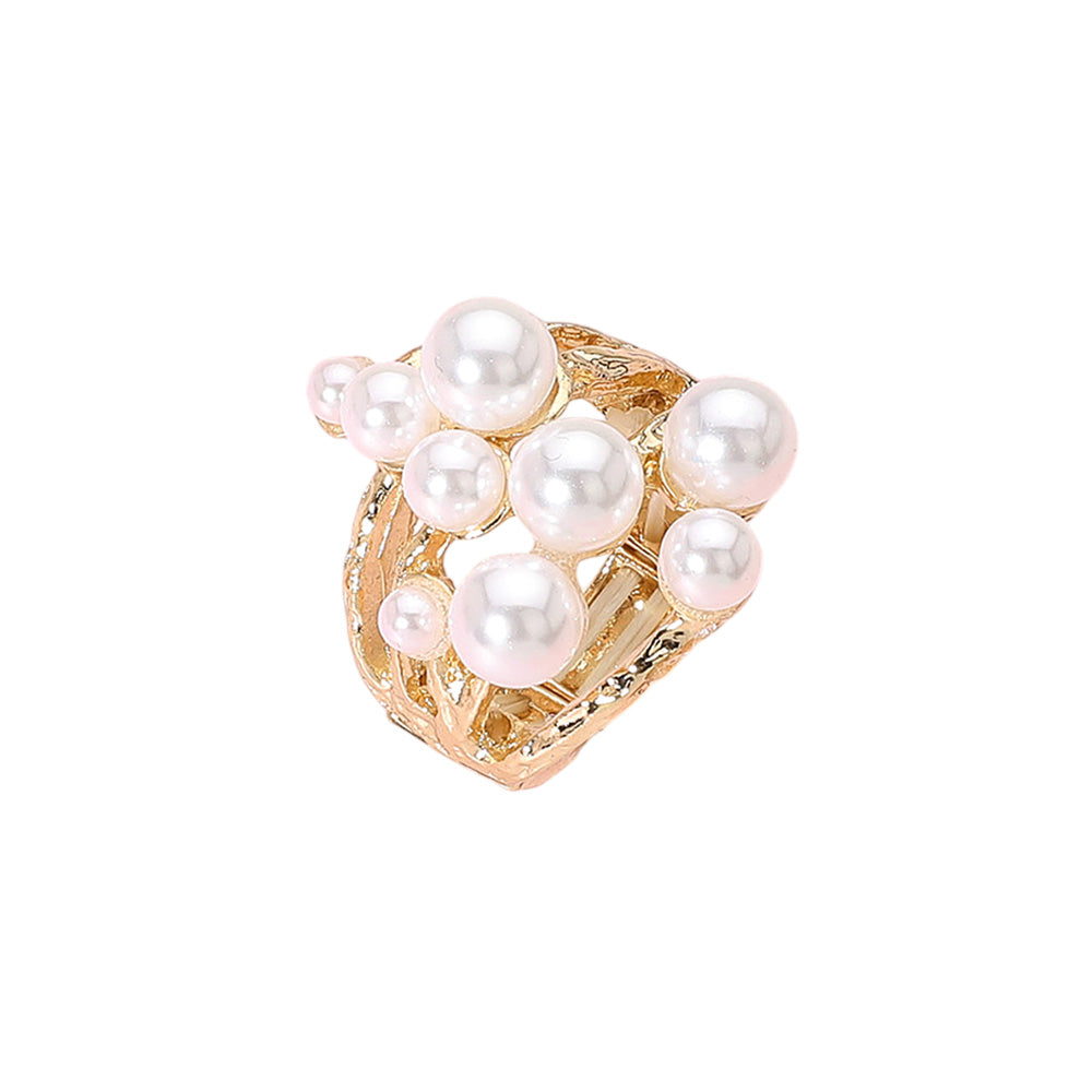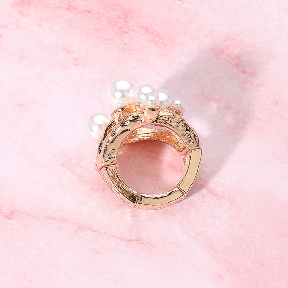 Radiate timeless elegance with the Pile of Pearls Gold Cluster Ring. This statement piece features a beautiful cluster of luminous faux pearls arranged in a sculptural gold-plated setting. With its comfortable stretch-to-fit design, it’s the perfect blend of classic sophistication and modern wearability—ideal for both everyday glamour and special occasions.
