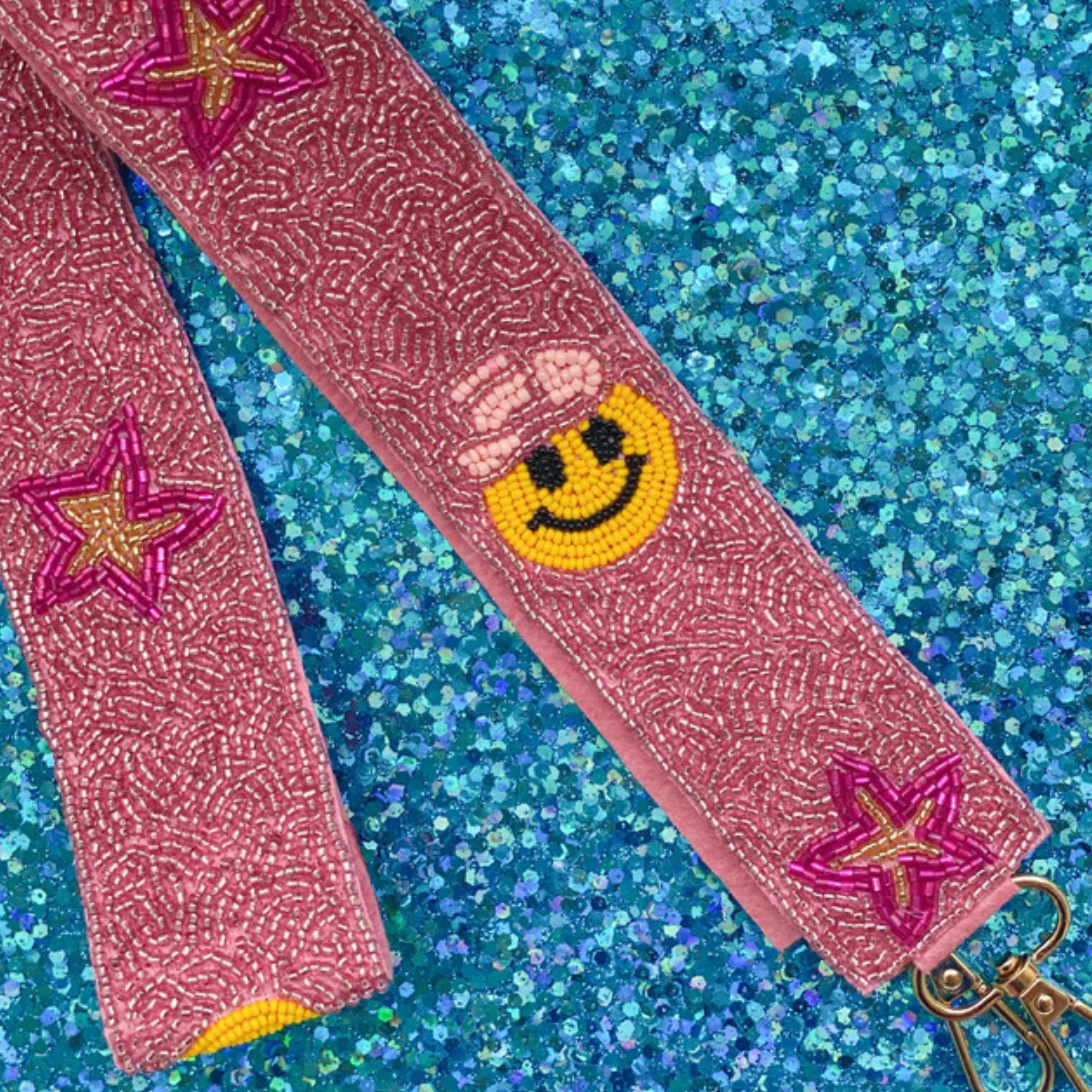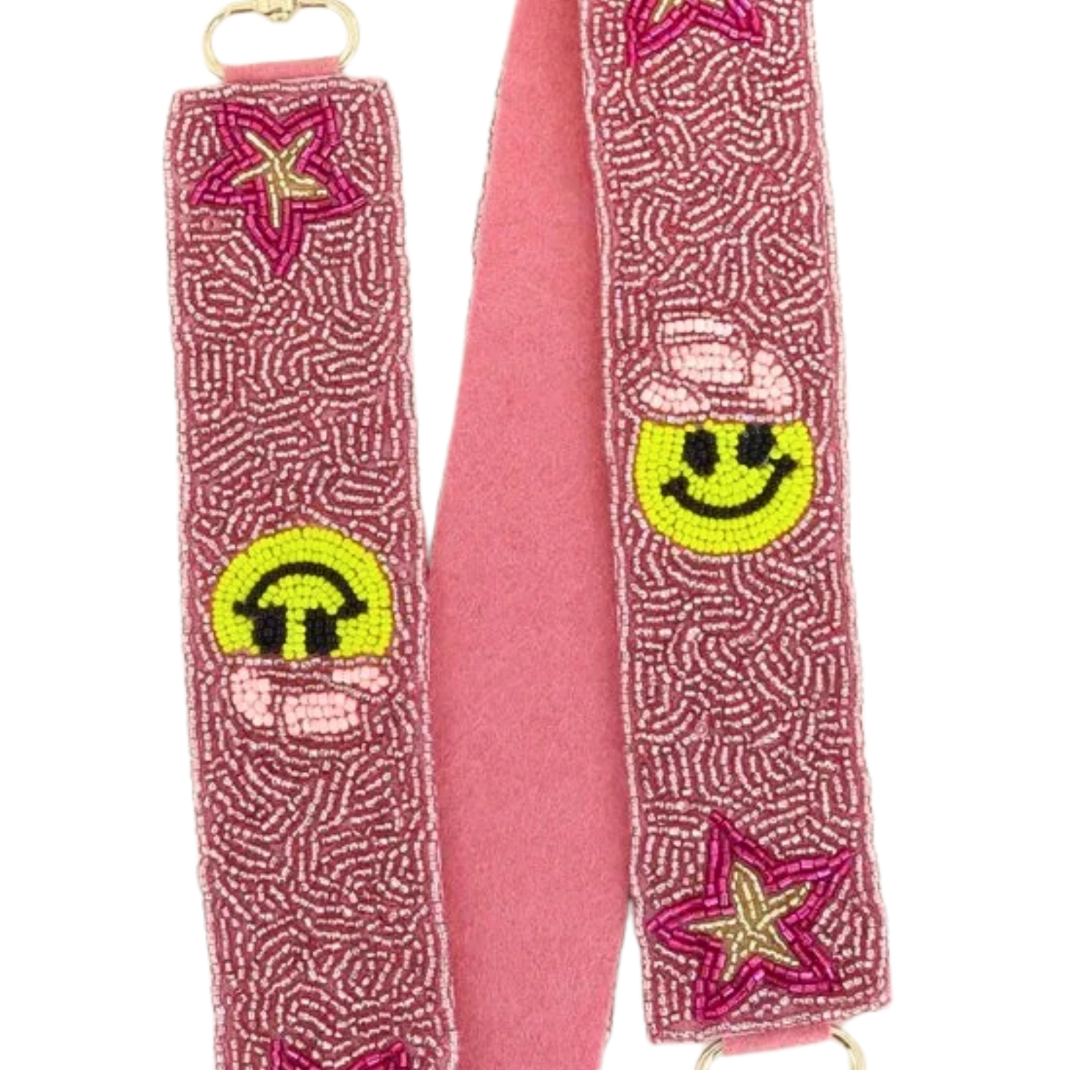 Pink Cowgirl Smiley Beaded Crossbody Bag Strap