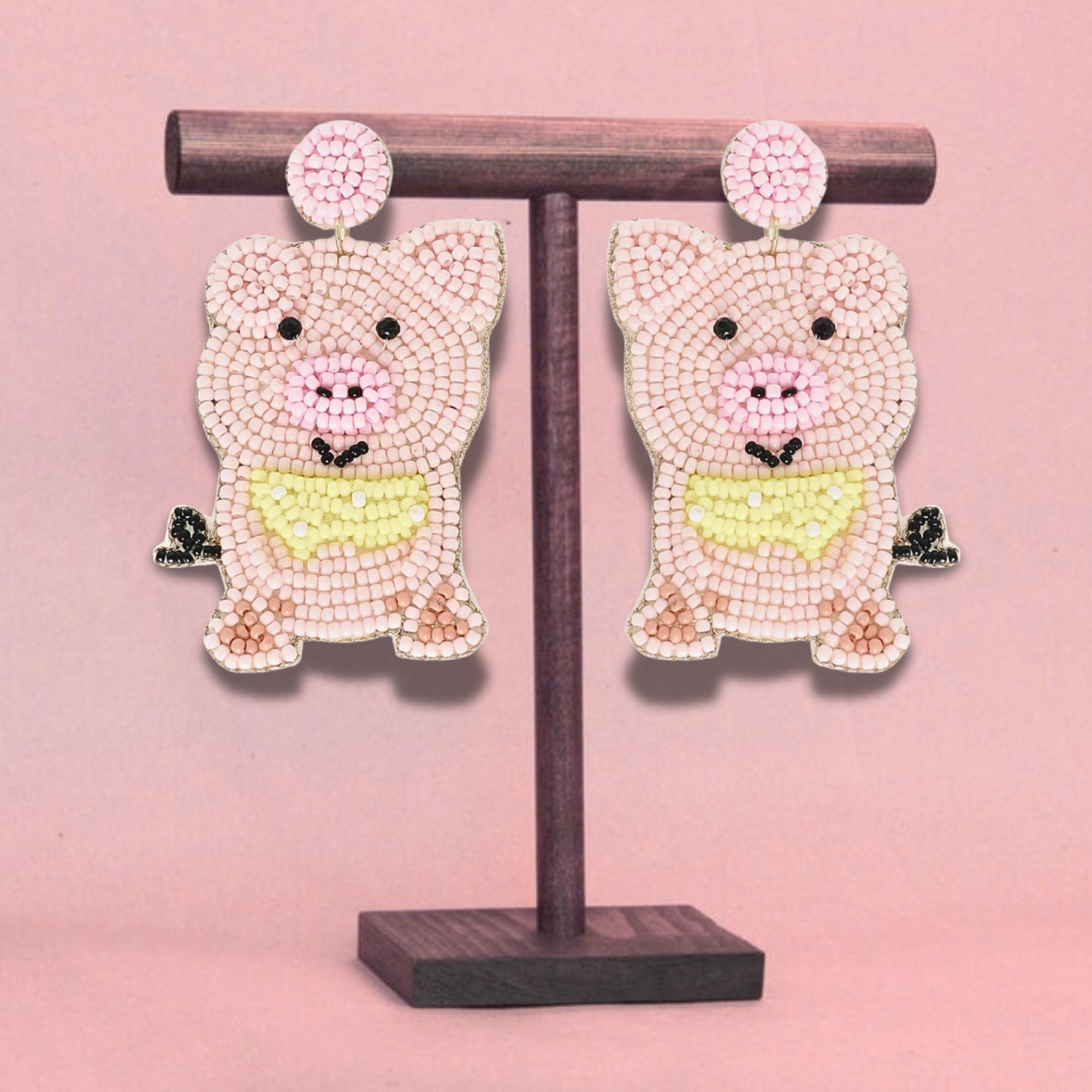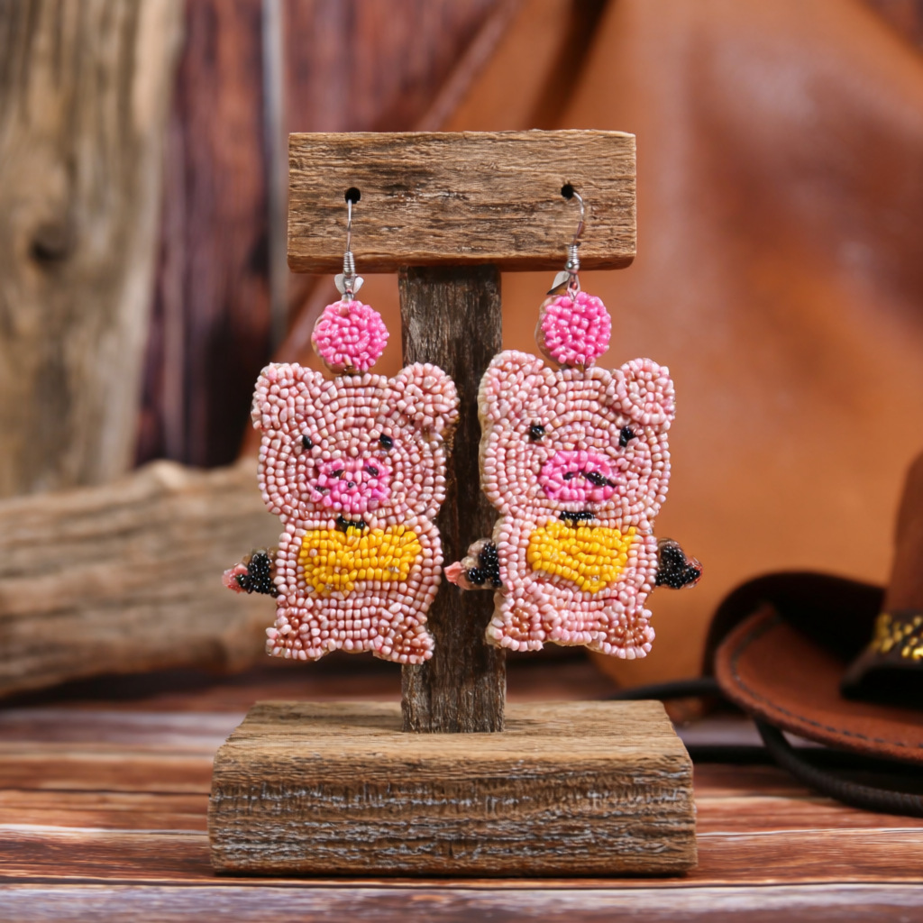 Bring a playful dose of western charm with the Polka Dot Bandana Pig Beaded Earrings. These 2-tier cowboy pig statement earrings feature adorable polka-dot bandanas and detailed bead embroidery. Lightweight, felt-backed, and hypoallergenic, they make the perfect mix of humor, craftsmanship, and country flair—ideal for rodeo nights, festivals, or everyday cowgirl style.