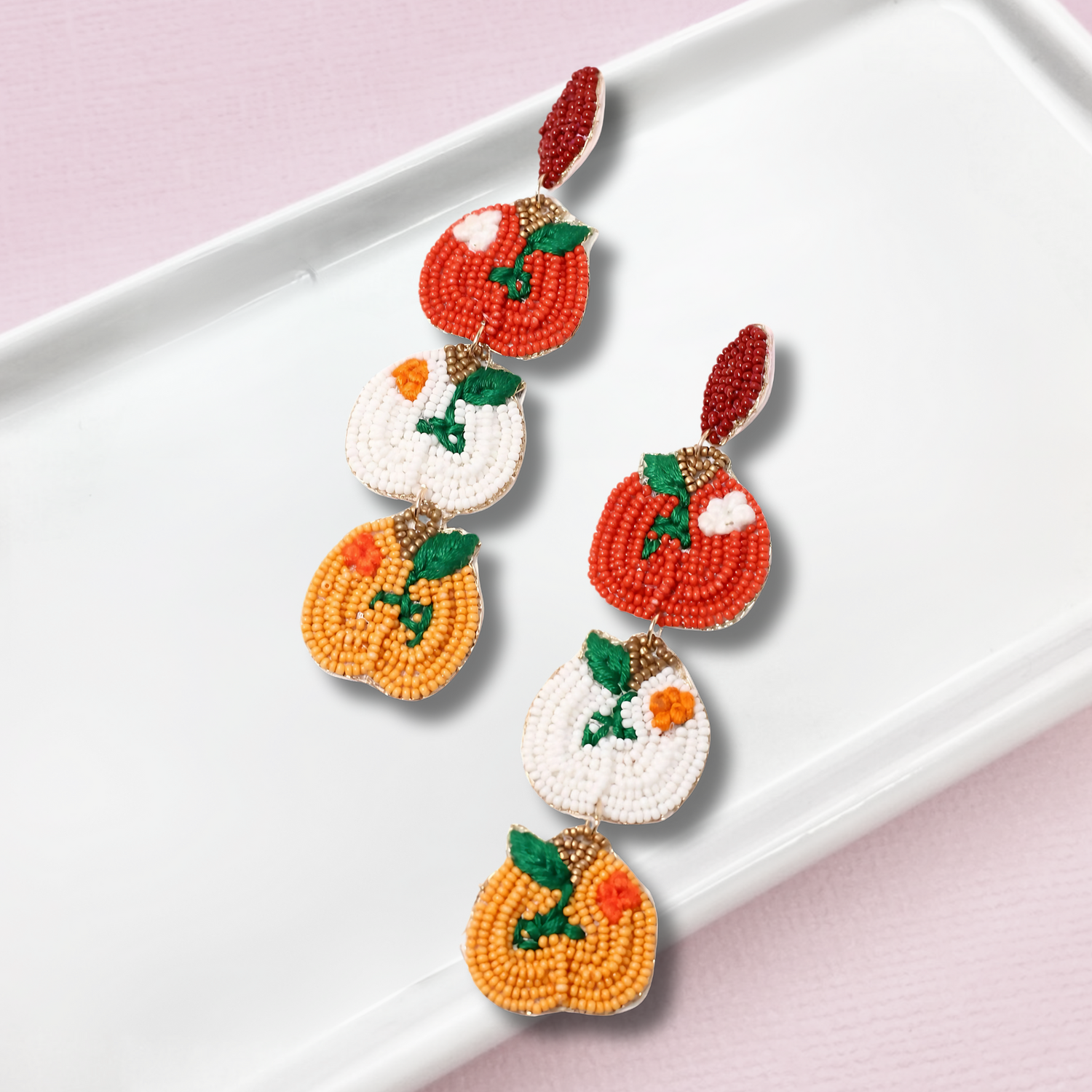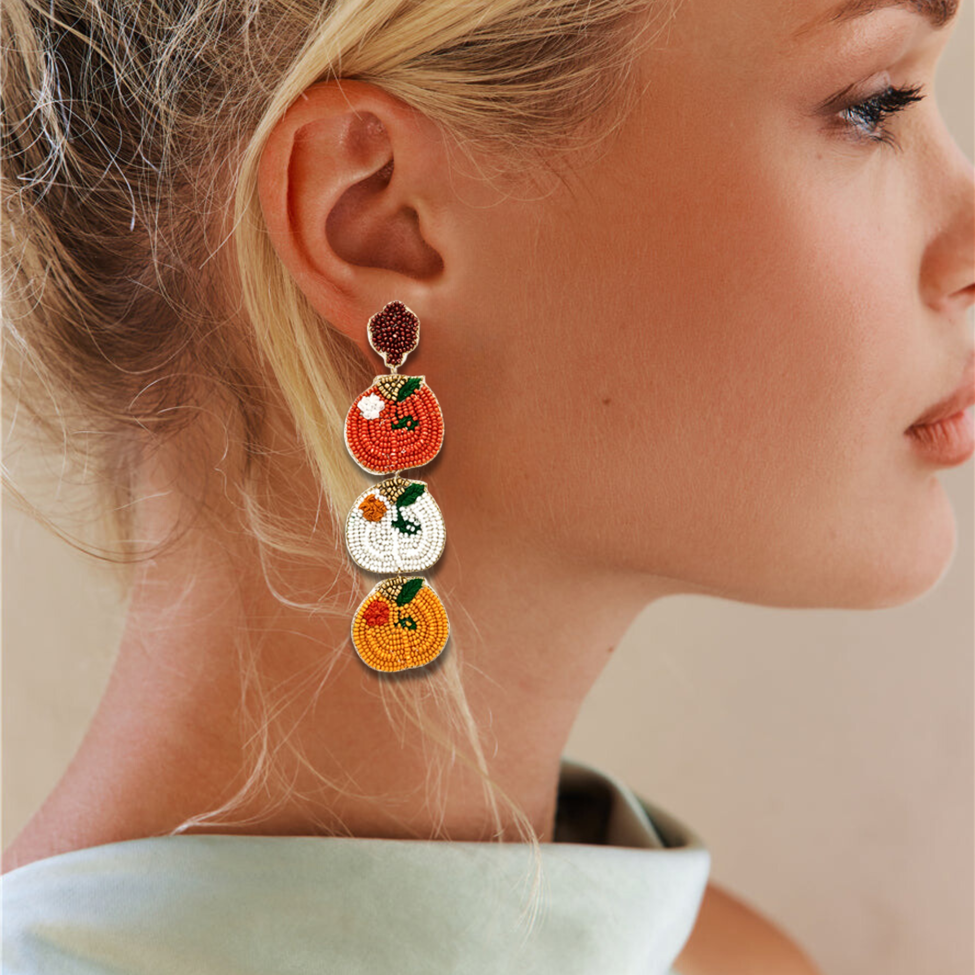 Pumpkin Patch Party Fall Autumn Theme Beaded Earrings
