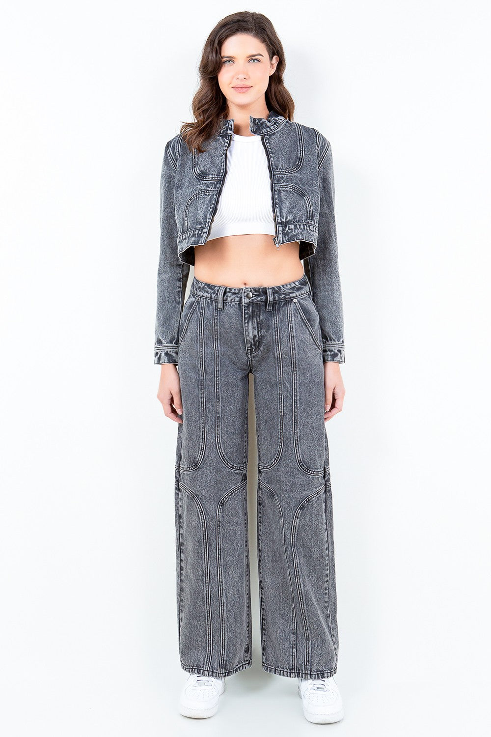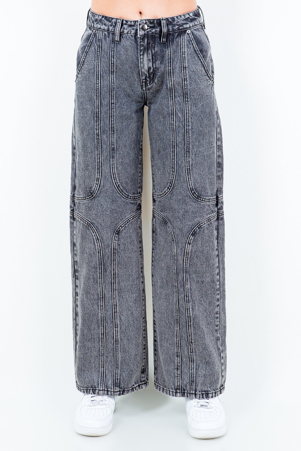 The Retro Boho Seam Wide Leg Jeans in Black Wash, lean into a relaxed, easygoing silhouette with subtle seam detailing for visual length and shape. Designed with a button waist closure and loose wide leg, these jeans offer a comfortable drape and soft, broken-in feel. A natural match for graphic tees, tanks, cropped sweaters, and effortless everyday layering.