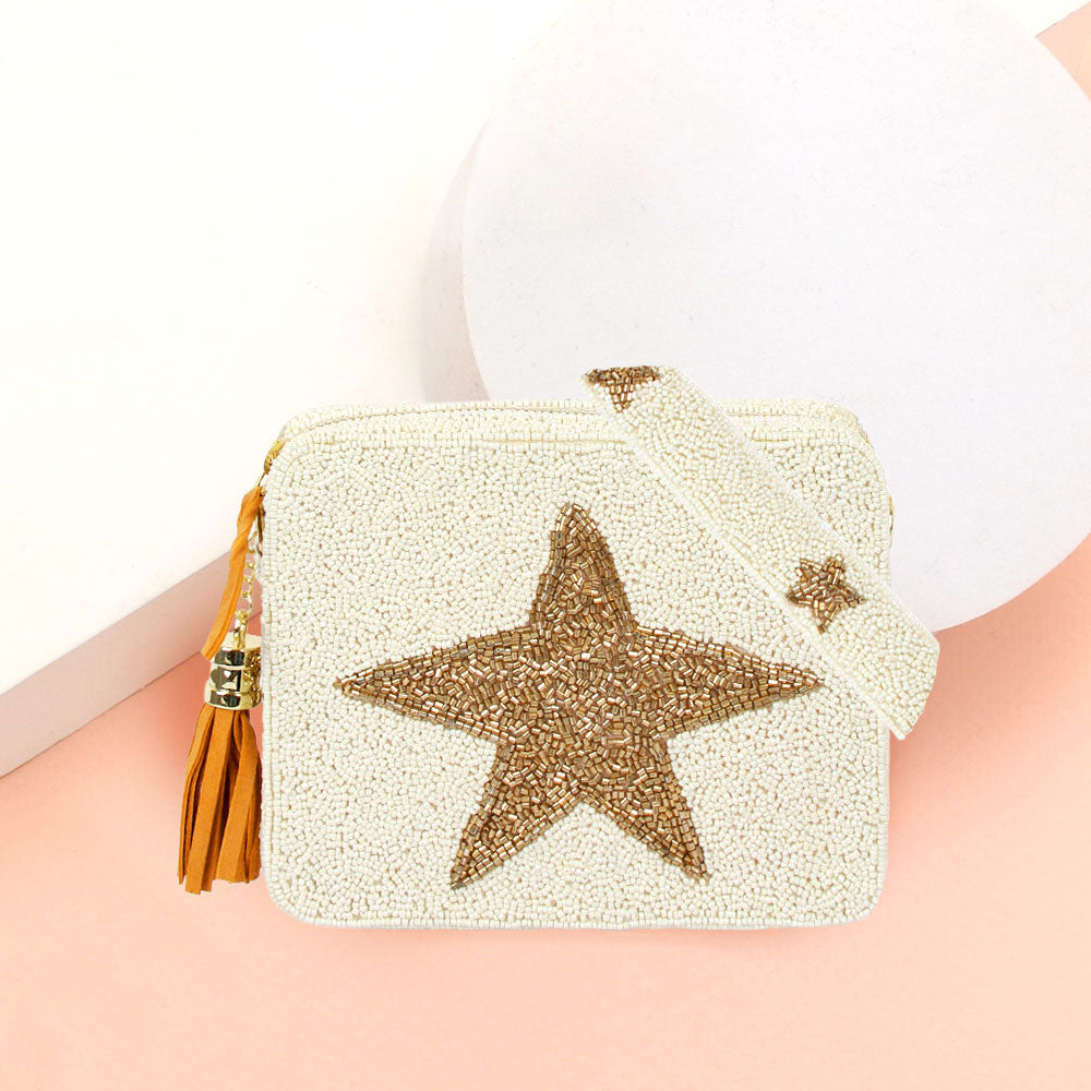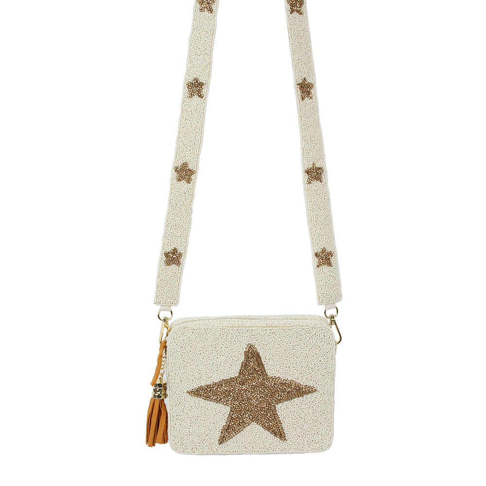 Seed Beaded Gold Star Crossbody Tassel Box Bag