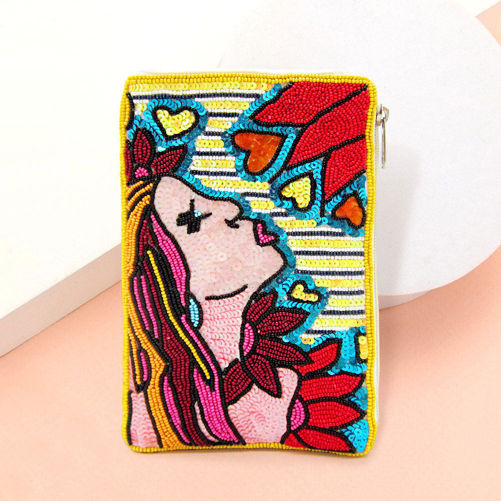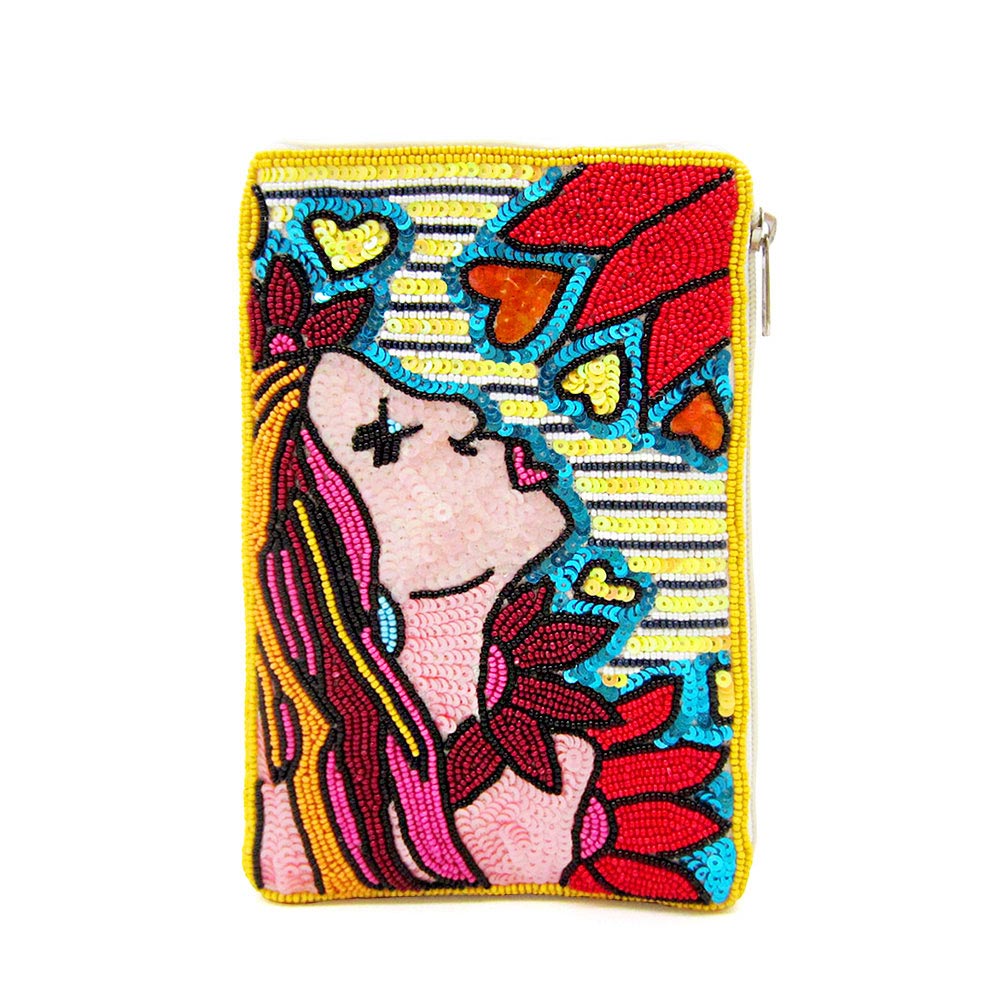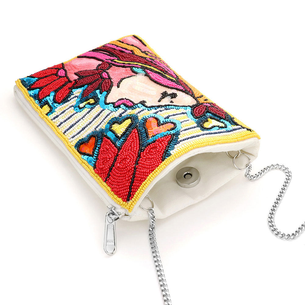 Seed Beaded Kissing Girl Diva Crossbody Bag
