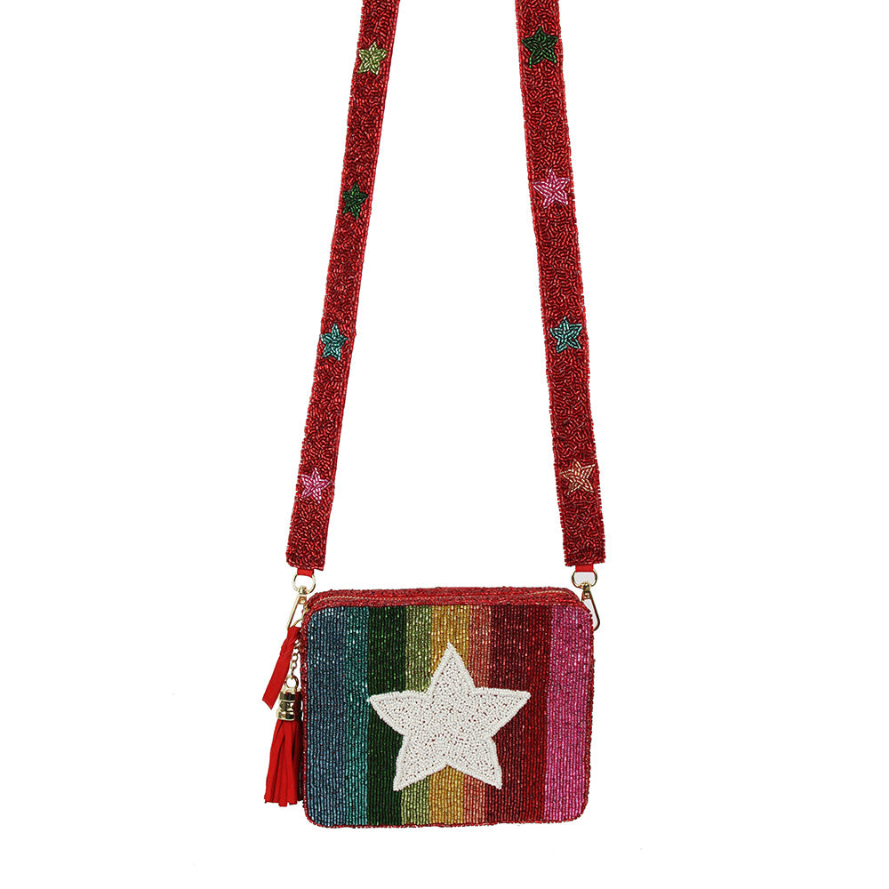 Seed Beaded Rainbow Star Crossbody Tassel Box Bag