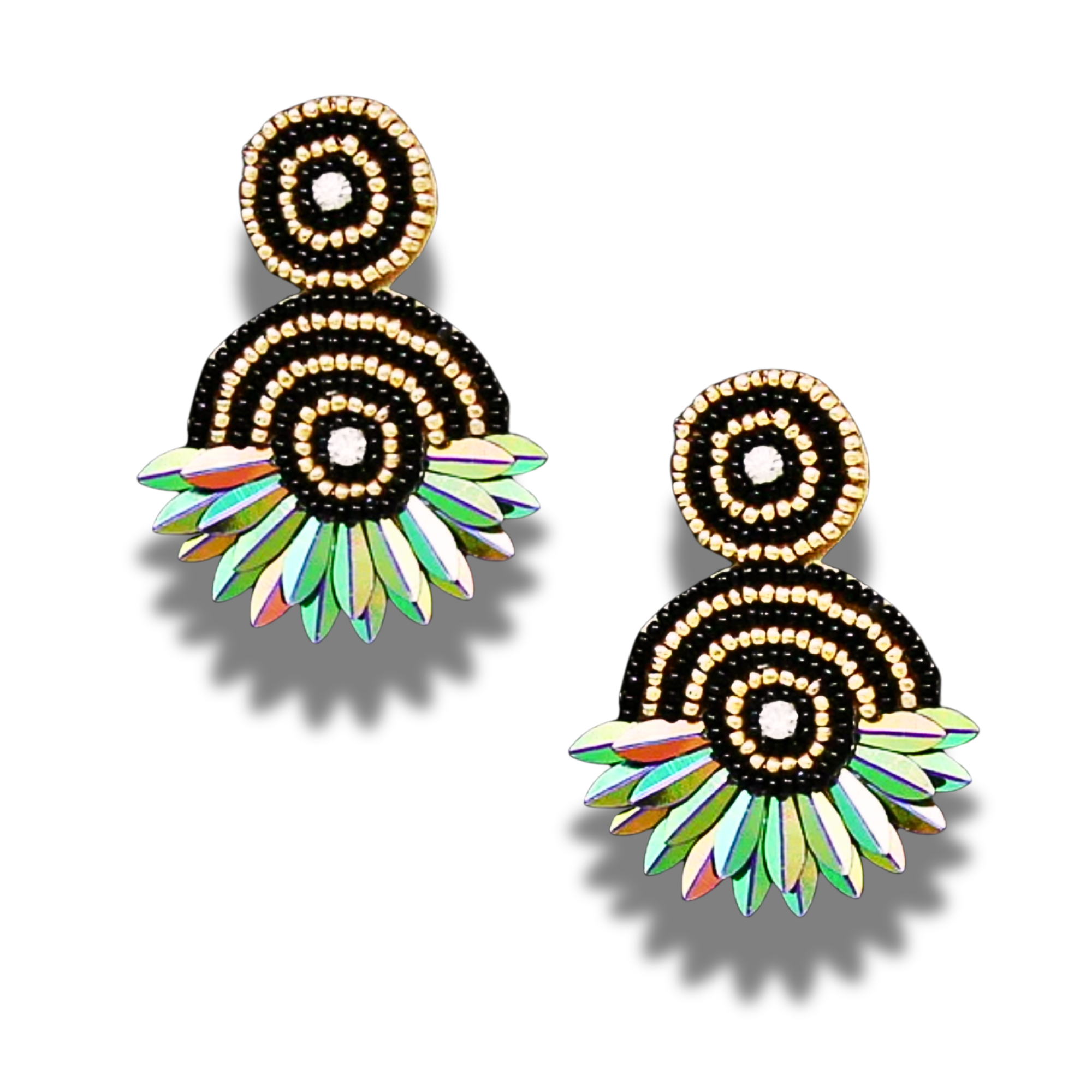 Sequin Fringe Seed Beaded Disc Drop Earrings