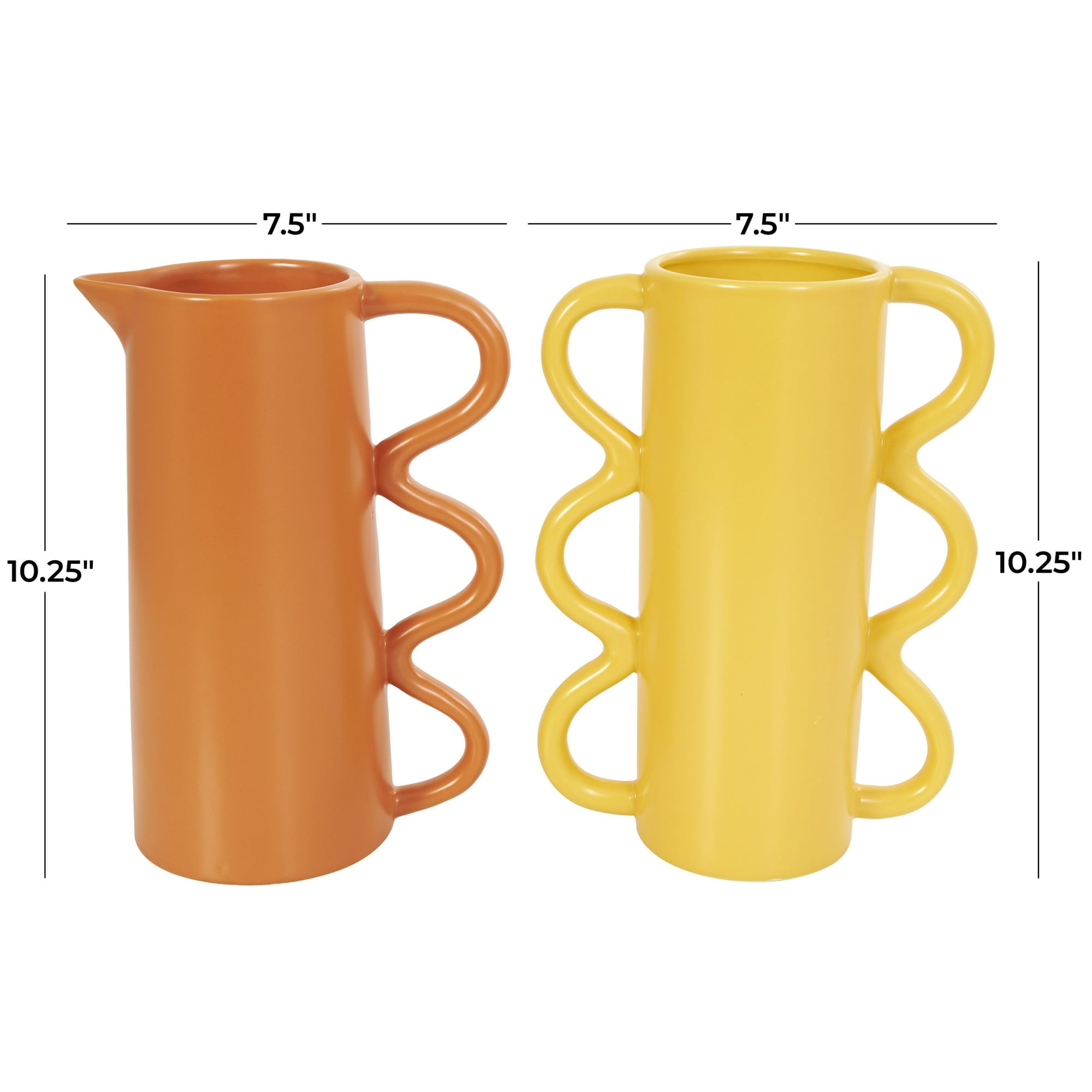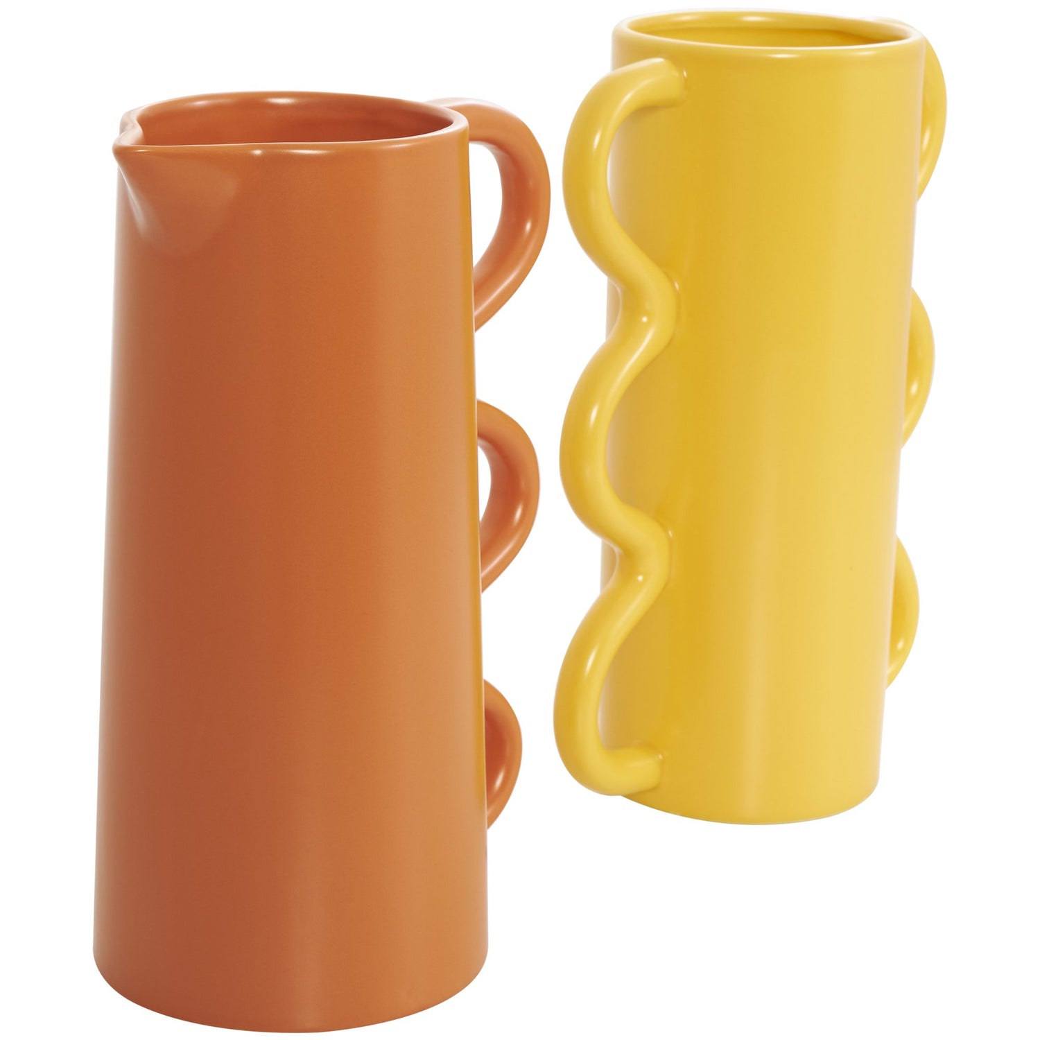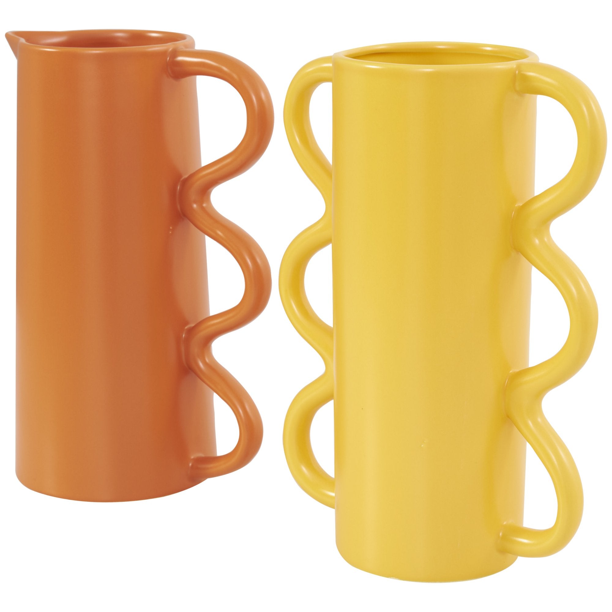 The vases feature varying geometric shapes and wavy handles, adding a unique twist to traditional vase designs.