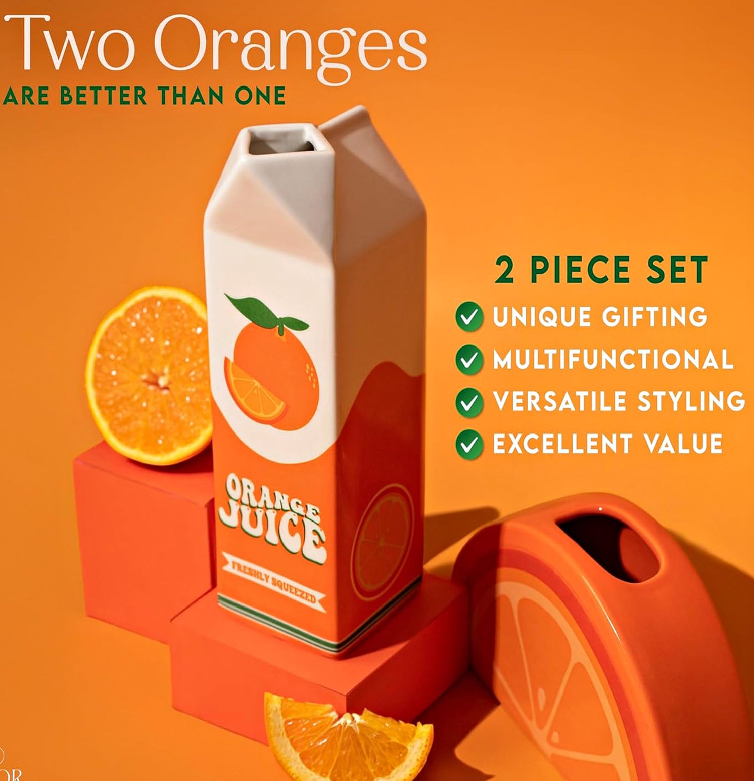Instead of a single flower vase square vase, we made a 2pc juice box vase and orange slice vase with unique and all new art!