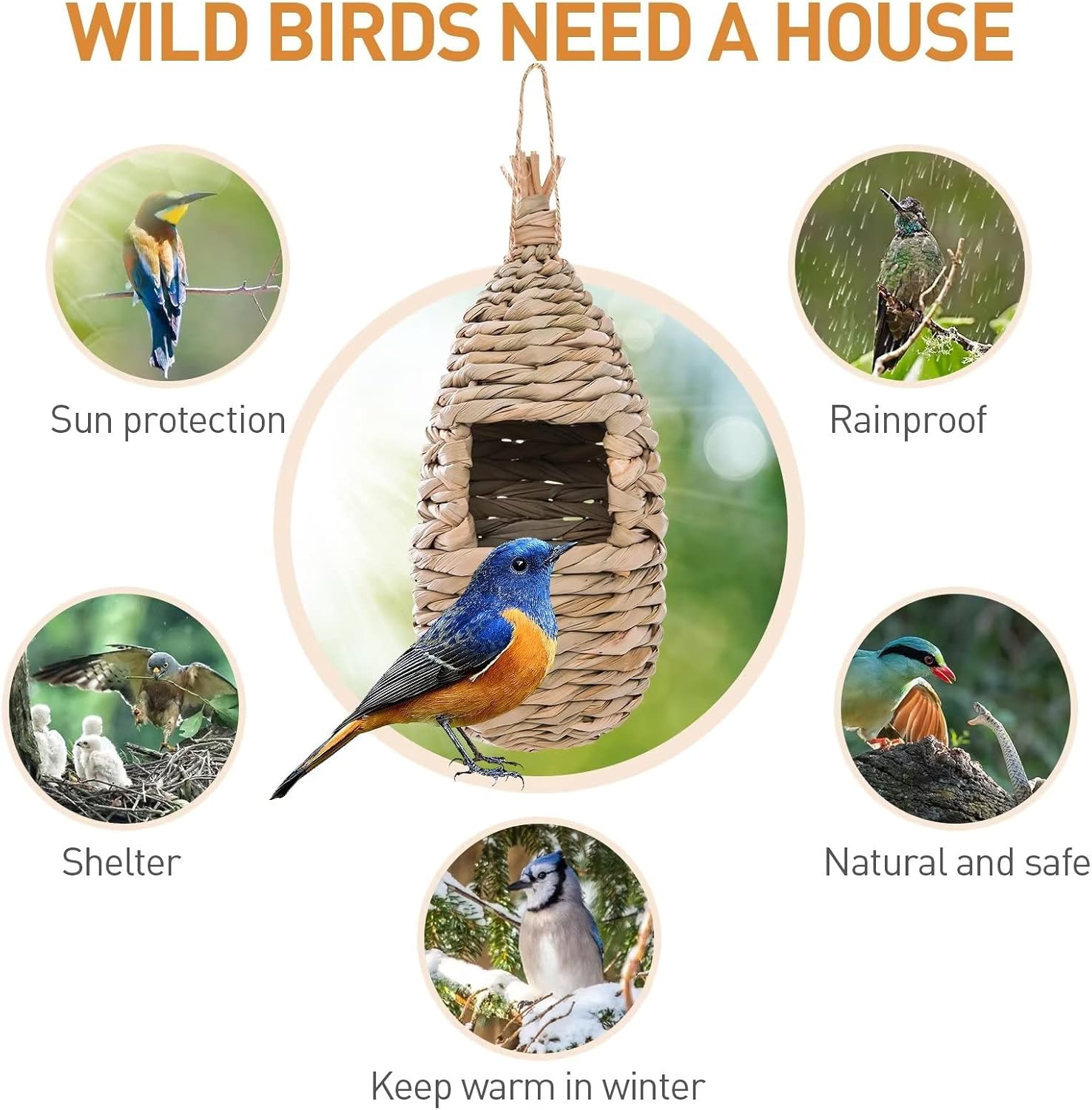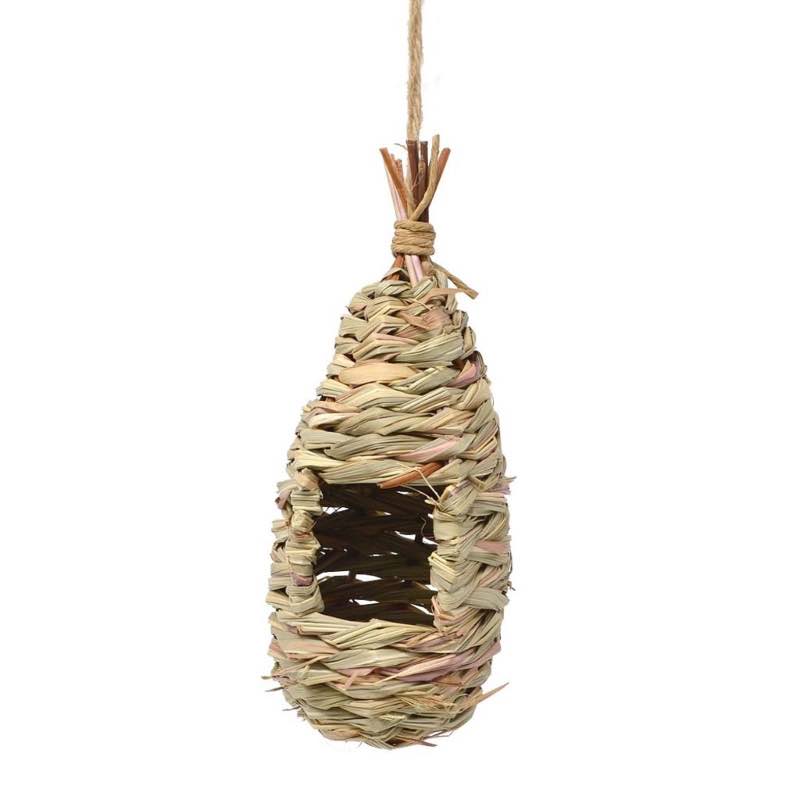 This nesting or roosting house is the perfect safe space for birds. Made from natural reed grasses, it blends in with the natural environment and will ensure backyard birds feel at home. Nesting birds also appreciate rougher surfaces for their nests and homes because they allow them to enter and exit more easily. The nesting space also includes natural ventilation and drainage.