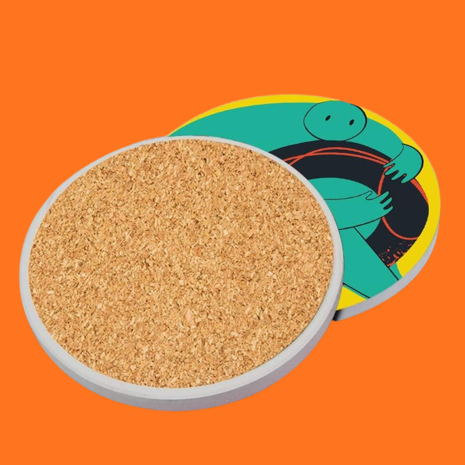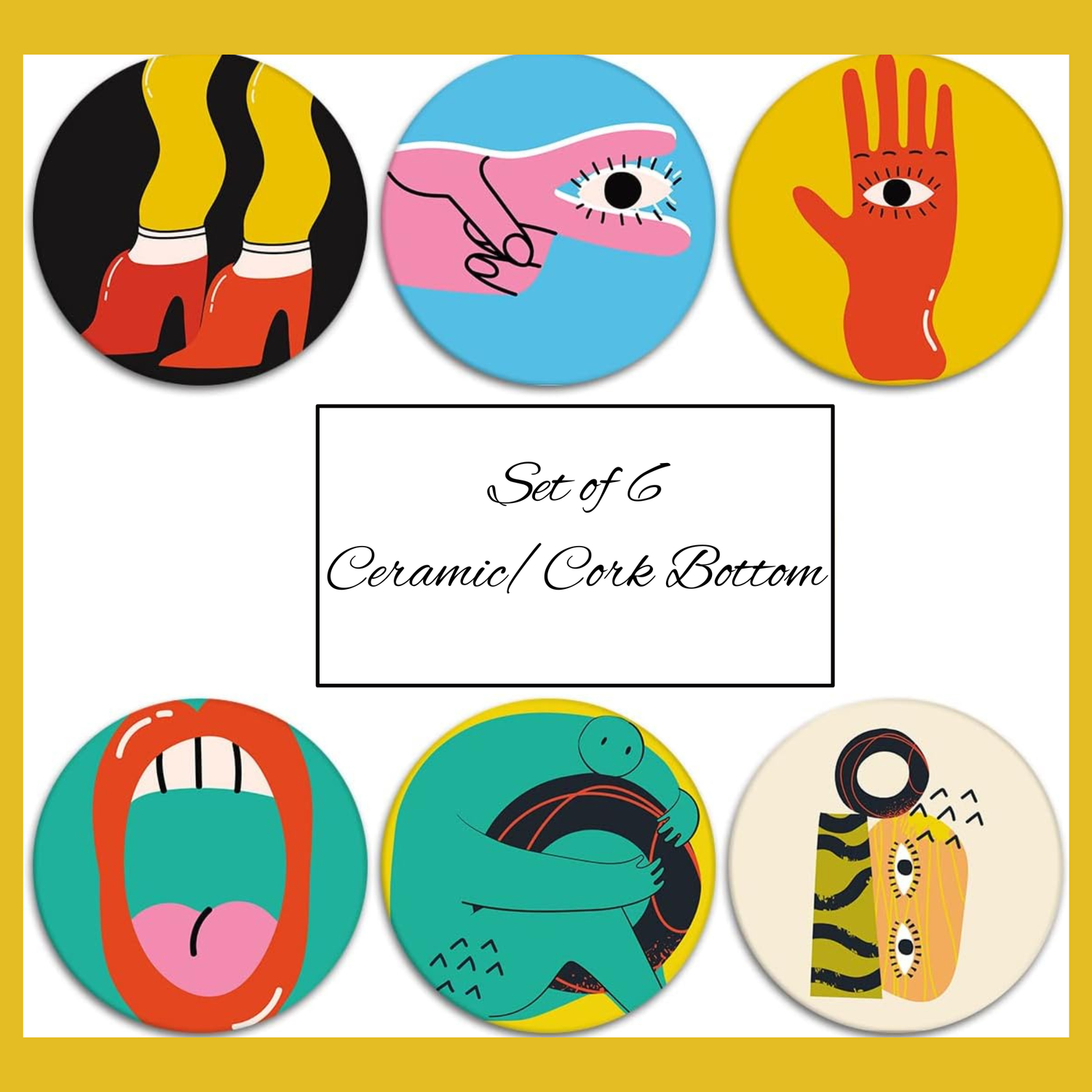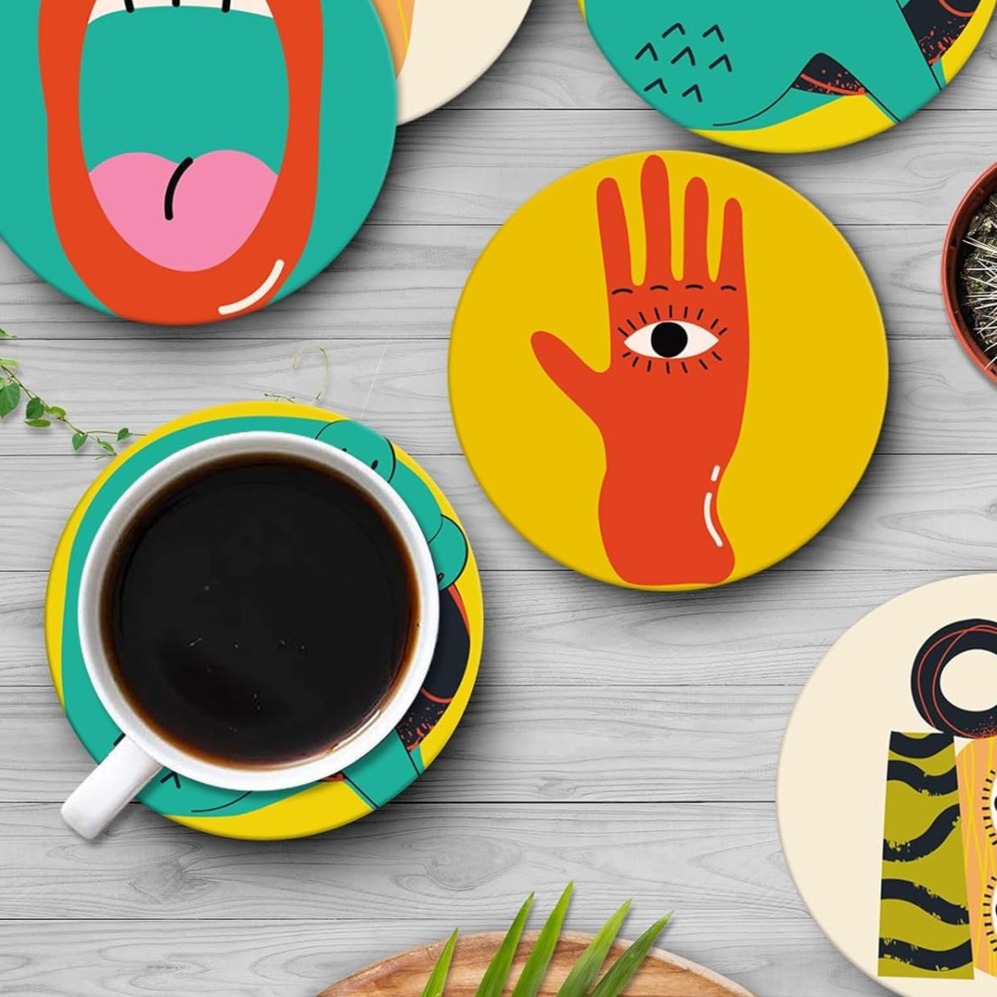 These artsy ceramic coasters are handcrafted and add a touch of modern and fun style to your tableware. The coasters feature a cork base to keep them in place. The colorful artwork is eye-catching and upgrades any setting from casual to party,