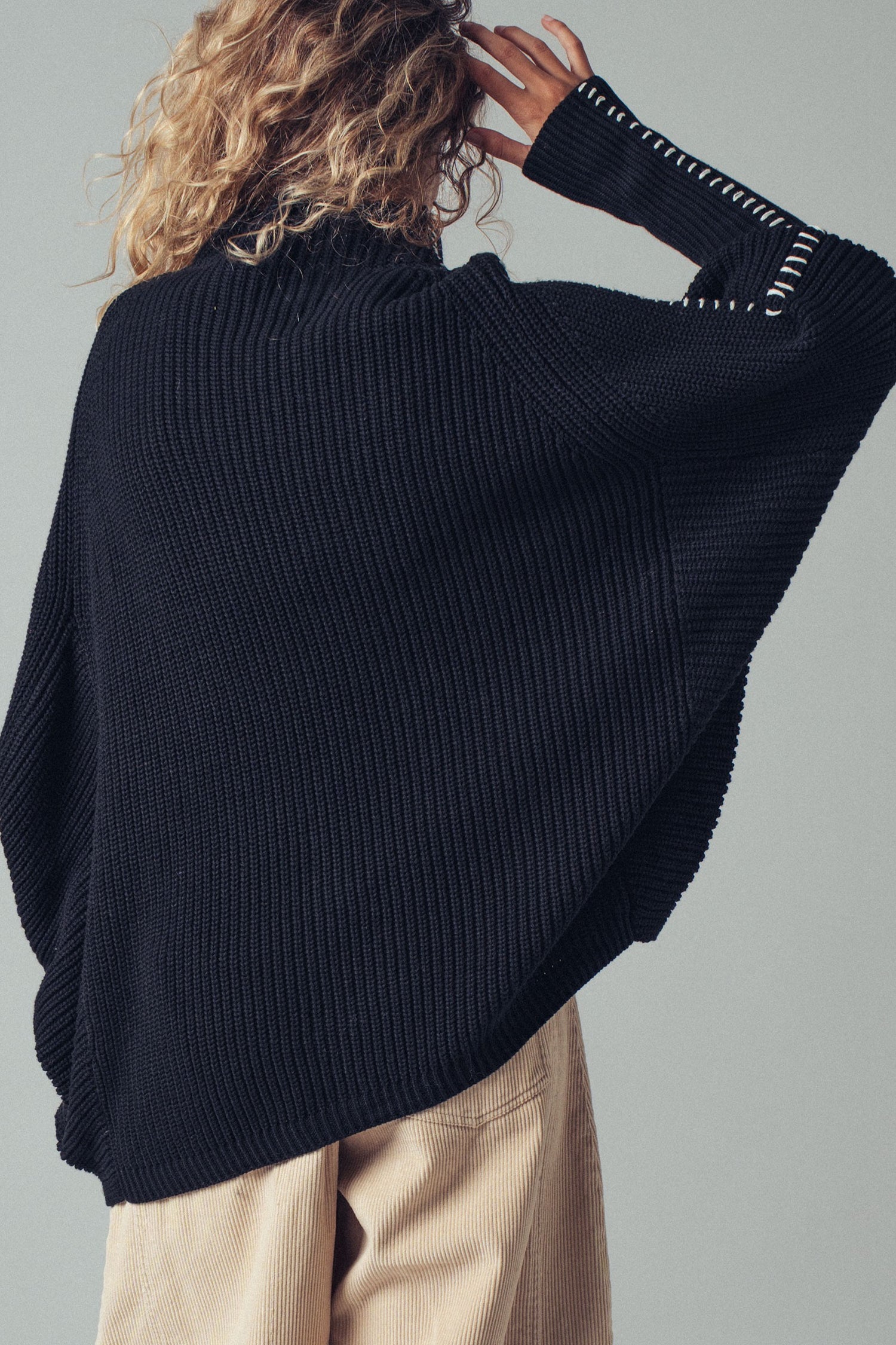 Add a playful twist to your cozy-weather wardrobe with the She's A Star Oversized Contrast Stitch Sweater. Featuring a bold black star design and unique stitched details on the sleeves, this statement knit is perfect for layering over your favorite bottoms for a relaxed yet stylish vibe.
