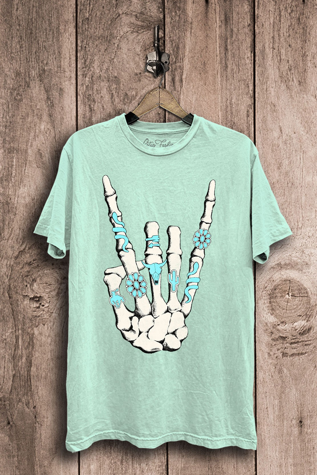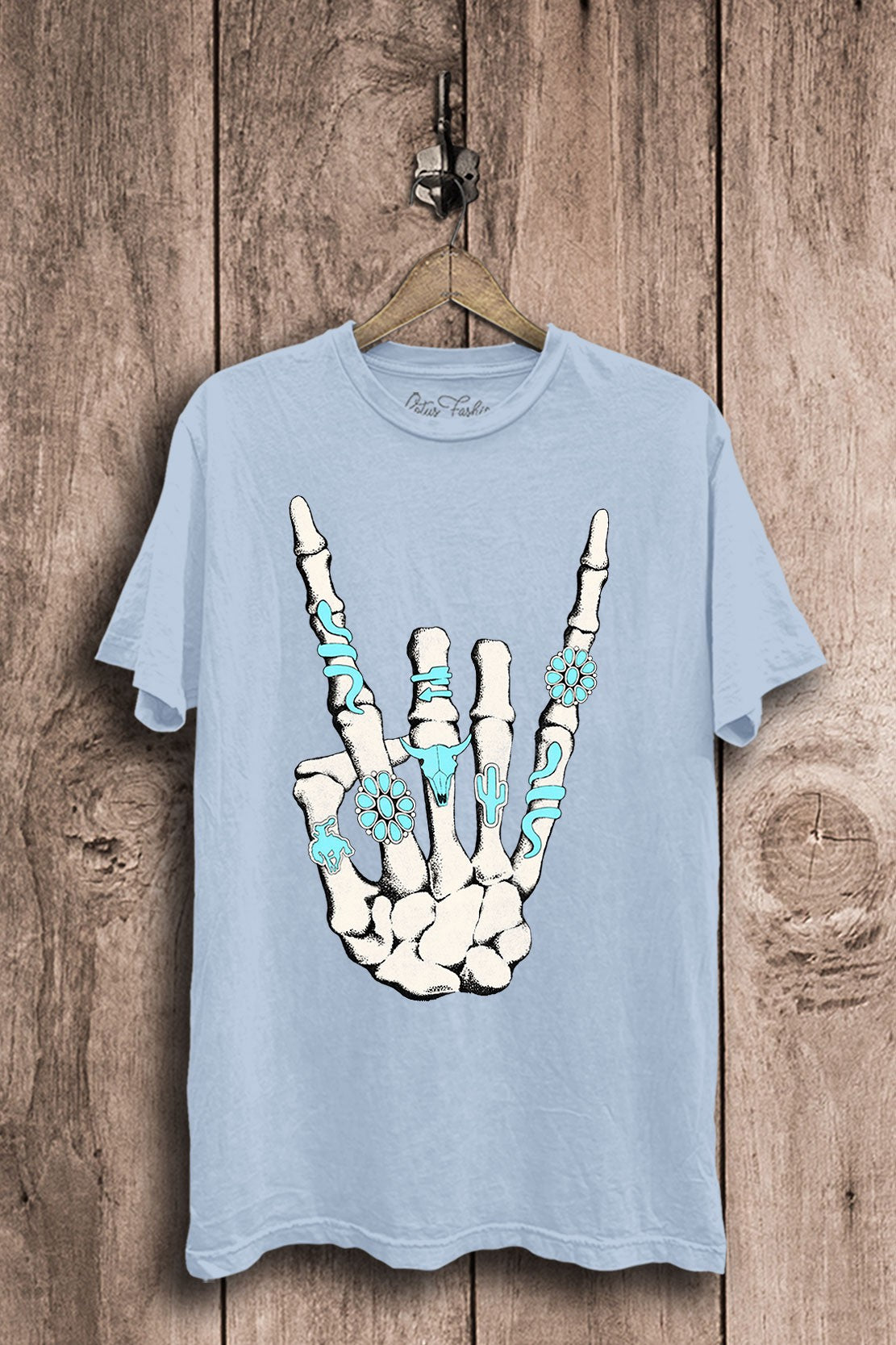 Skeleton Rock-On Hand Sign Western Graphic T-Shirt