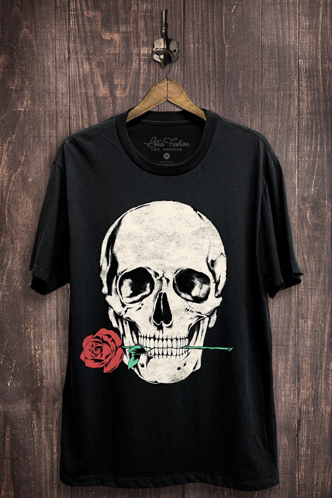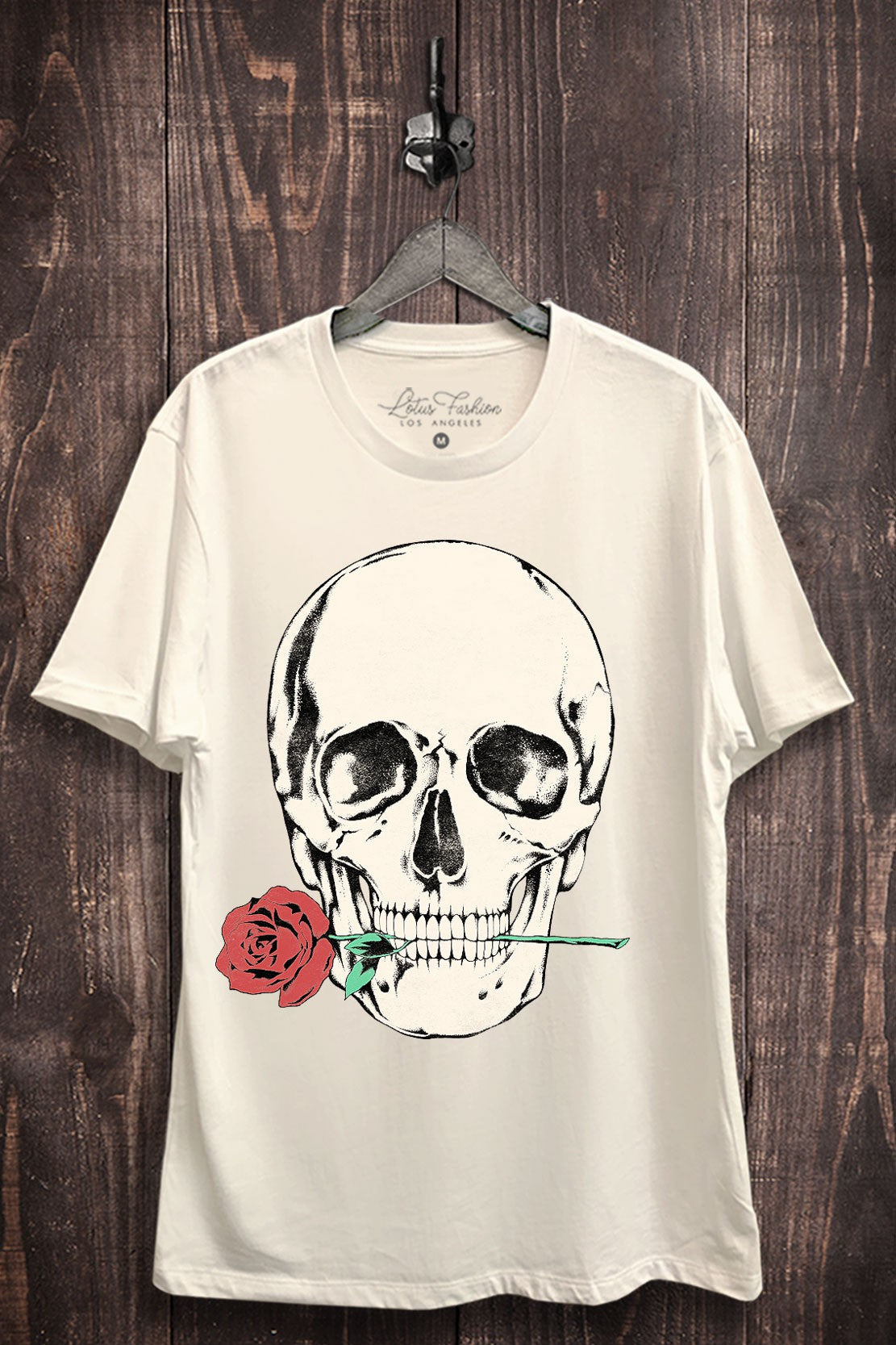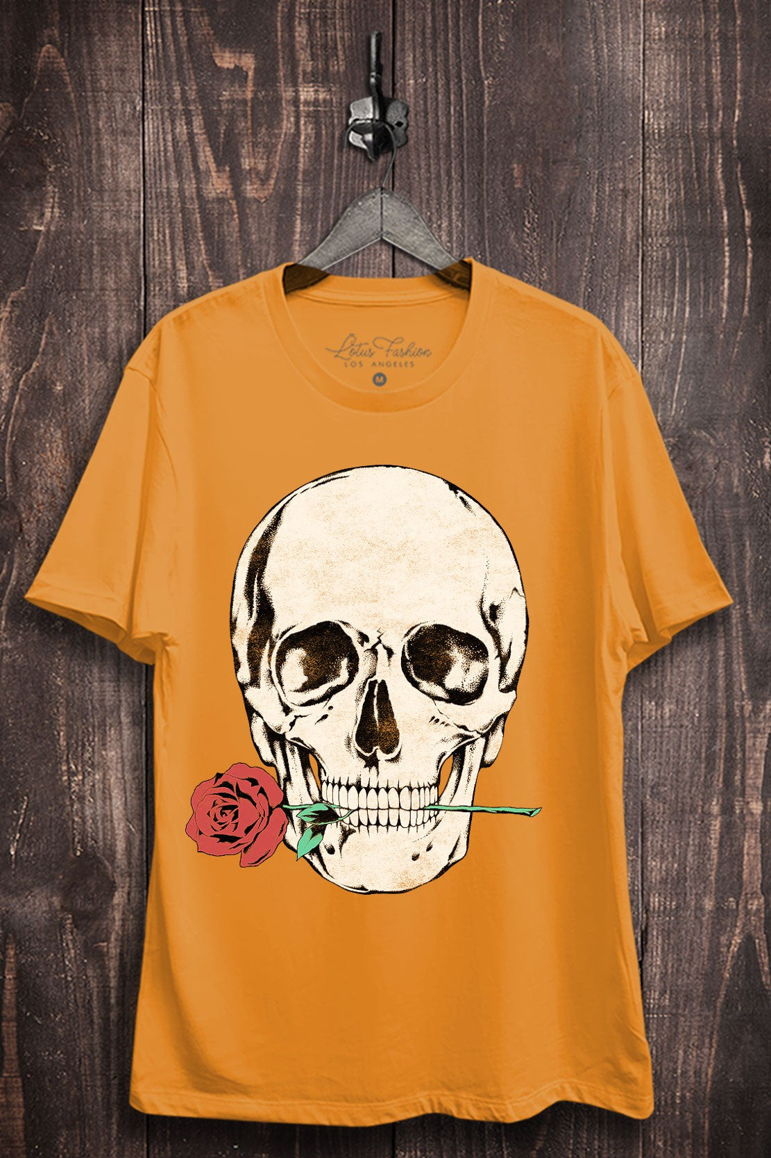 Rock your style with the Skull With A Rose Graphic T-Shirt, a vintage-inspired graphic tee that’s effortlessly cool and endlessly wearable. Crafted in 100% cotton, this tee is loose in all the right places with a soft drape, an open crew neckline, and slightly dropped sleeves for that laid-back retro vibe. Featuring an exclusive hand-drawn design, silk-screened in-house at our Los Angeles studio, this top is as original as it gets.