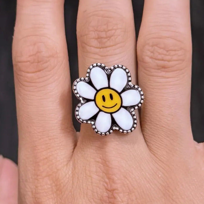 Bring a little sunshine and western charm wherever you go with the Smiley Face Darling Daisy Ring. This playful silver cuff ring features a cheerful yellow smiley face at the center of a daisy-inspired design. Adjustable and lightweight, it’s the perfect blend of happy-go-lucky style and cowgirl attitude—ideal for festivals, weekends, or everyday fun.