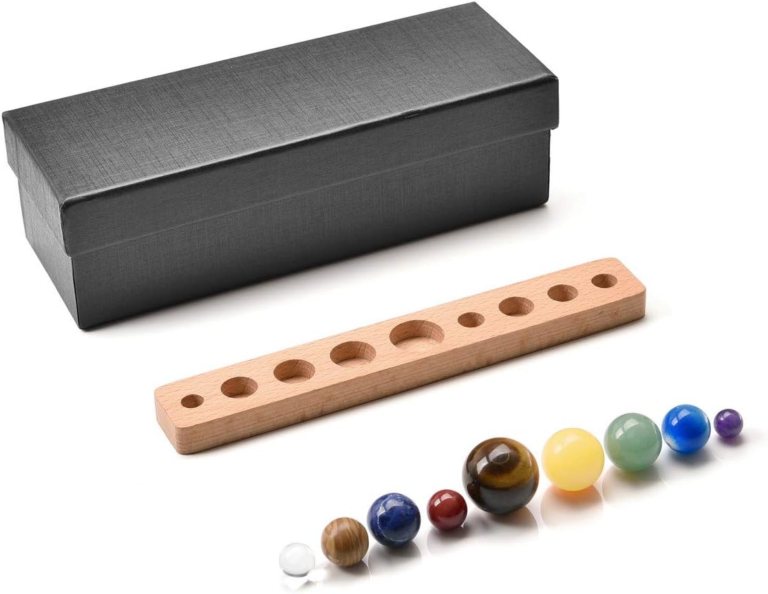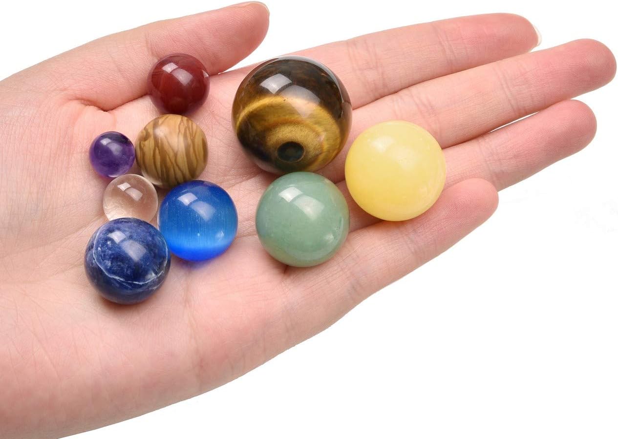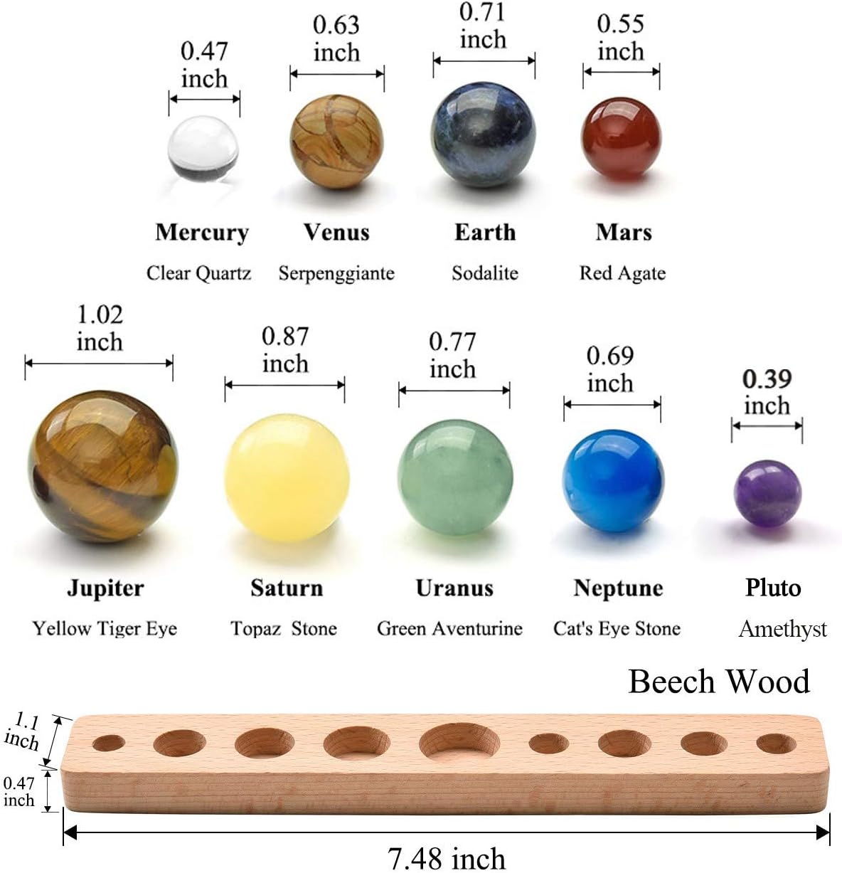 Mercury(12mm Clear Quartz), Venus(16mm Serpenggiante), Earth(18mm Sodalite), Mars(14mm Red Agate), Jupiter(26mm Tiger Eye Stone), Saturn(22mm Topaz Stone), Uranus(20mm Green Aventurine) and Neptune(18mm Cat's Eye Stone).