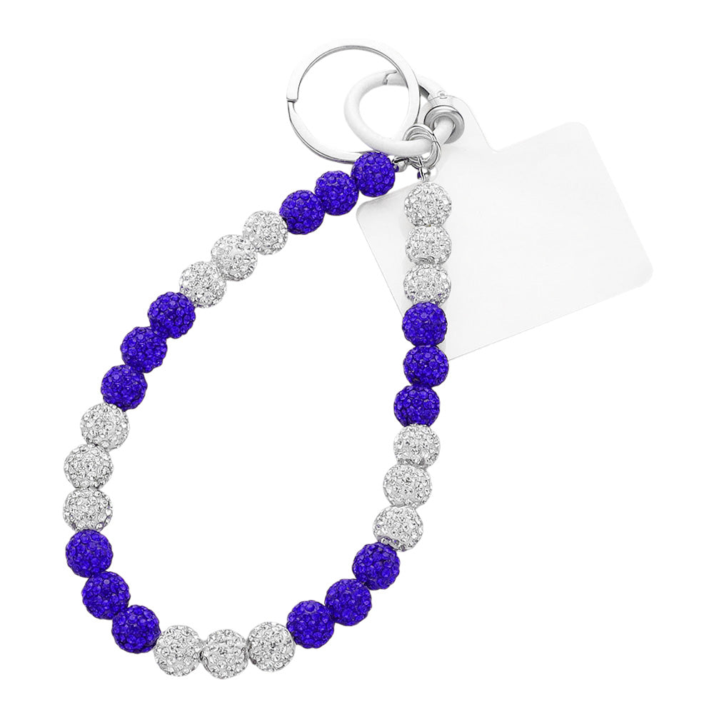 Shamballa ball beaded, stylish beaded phone wrist strap featuring a secure key ring attachment for versatile use.